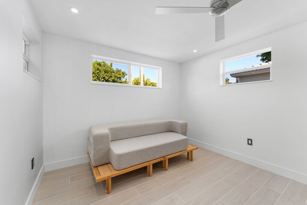 This waterfront residence in the exclusive guard-gated Biscayne Point neighborhood seamlessly blends mid-century modern design with newly updated, high-end finishes. Filled with natural light, the home offers three bedrooms, three and a half bathrooms, and a welcoming foyer that opens into an expansive living area ideal for both everyday living and entertaining. Adjacent to the dining room, the chef's kitchen is thoughtfully appointed with a steam and convection oven, induction cooktop, 48" refrigerator, wine chiller, and premium finishes throughout. Outdoors, lush landscaping frames a backyard designed for effortless entertaining. A newly constructed outdoor entertaining area features a polished concrete bar, positioned alongside a raised Trex deck and across from a fire pit lounge. The property boasts 60 feet of waterfront, complete with a private boat lift and direct ocean access with no fixed bridges. 12-month lease term. First month rent, last month rent, and one month security deposit due before occupancy. Tenant is responsible for all utility services except landlord-managed landscaping maintenance.