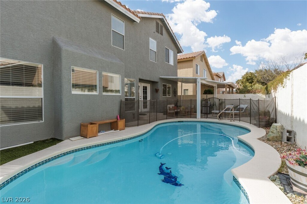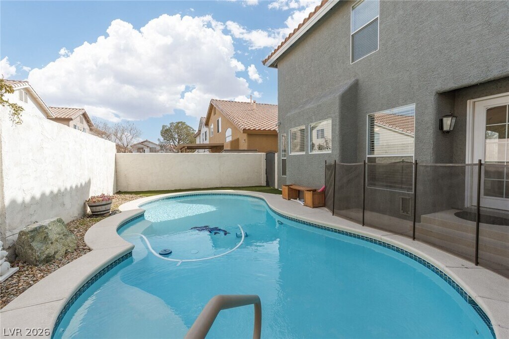 Welcome to this stunning fully furnished 4-bedroom, 2.5-bathroom home located in the Northwest Las Vegas. The kitchen is a chef's dream, featuring an island layout with beautiful granite countertops and stainless steel appliances. The large master suite is a private retreat, complete with a separate tub and shower. The home also offers a reverse osmosis water system for pure, clean drinking water. Outside, you'll find a synthetic lawn for easy maintenance and a sparkling swimming pool, perfect for those hot Vegas summers. Plus, enjoy the freedom of no HOA. This home truly has it all, offering luxury living in a prime location.