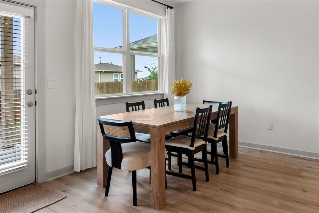 Welcome to elevated suburban living in this impeccably maintained 4-bedroom, 2.5-bath residence in Parker Station. From the moment you step inside, you're greeted by a serene entry that leads into a sunlit, open-concept living space designed for both style and function. The kitchen serves as the heart of the home with sleek quartz countertops, a gas range, an expansive walk-in pantry, and a beautifully sized island with seating perfect for effortless gatherings. Upstairs, all bedrooms are thoughtfully positioned along with a dedicated laundry room and a private flex space, ideal for a home office, media lounge, or creative retreat. The primary suite offers a spa-inspired feel with a walk-in shower, dual vanity and generous walk-in closet. Set within a quiet, master-planned community, this home enjoys access to a refreshing pool and sits amid open surroundings with significant growth and development on the horizon. A 2-car garage, low-maintenance backyard, and the home’s like-new condition further enhance its appeal. Perfectly situated with quick connectivity to 183, 290, and the 130 Toll Road, this location offers the best of both worlds—peaceful suburban living with convenient access to Austin. Nearby highlights include Walter E. Long Metro Park, the Austin Tennis Center and HEB just minutes away. Book your showing and apply today! *Refrigerator, washer and dryer included*