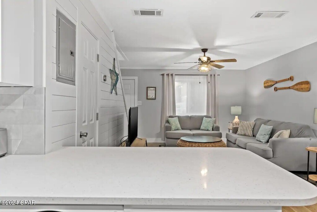 Available for rent January 15 through March. Renovated 2 bedrooms, 1.5 bathrooms, just steps away from the beach. Utilities included in monthly rent with up to $100 per month limit for electricity (typically around $70 a month in winter). Internet is also included. Refundable security deposit - $1,500. Whether you're enjoying soaking up the sunshine rays and water of the beautiful Gulf of Mexico, or out and about to experience the premier shopping and entertainment destination in PCB, this is the perfect stay for you!