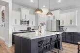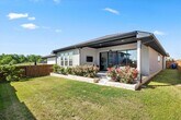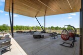 Enjoy the best of Easton Park in this beautifully maintained single-story home, just a short stroll to the Treehouse food truck park, Skyline Park, and the vibrant amenity center featuring a pool, fitness center, lounge, dog park, and more! Step inside to an open floorplan featuring high wood-beamed ceiling in the entryway and wood-look tile floors flowing through the main living areas. The family room is bathed in natural light thanks to a stunning 3 panel sliding glass door that spans the entire wall—effortlessly blending indoor and outdoor living, perfect for entertaining. The modern kitchen features quartz countertops, upgraded lighting fixtures, matte black cabinet hardware, a large island in a beautiful deep blue accent color, and an abundance of cabinet space that extends into the dining area. Need a quiet space to work or create? You’ll love the bonus office with elegant French doors and 4 windows for maximum natural lighting! The highly-functional floorplan features a guest room with its own full bathroom complete with a walk-in shower, separated away from the other two secondary bedrooms with their own bath & from the spacious primary suite, which looks out onto the back yard. Out back, relax on the spacious, tiled covered patio overlooking a beautifully landscaped yard—your private outdoor oasis.