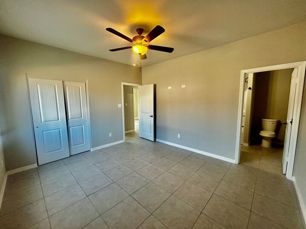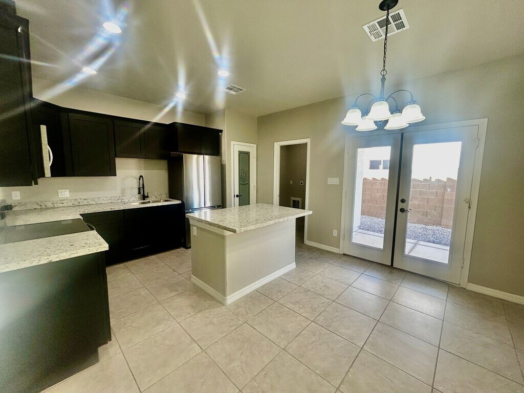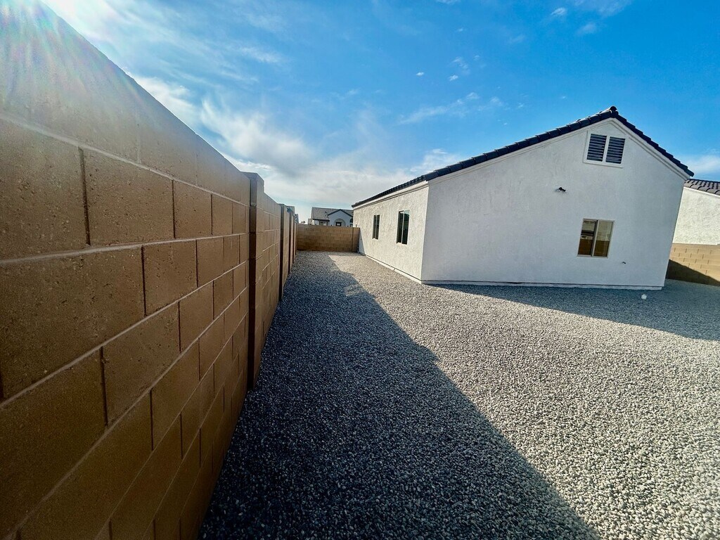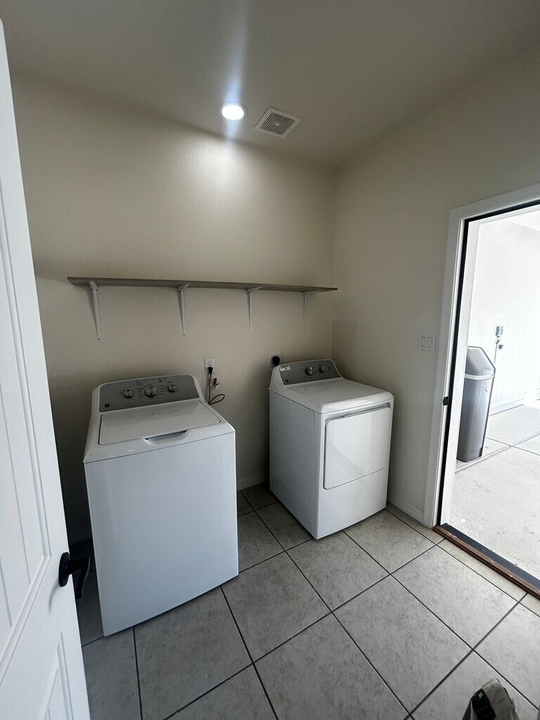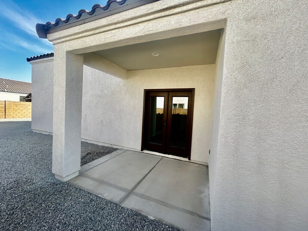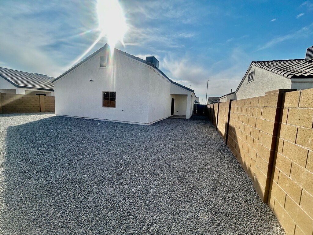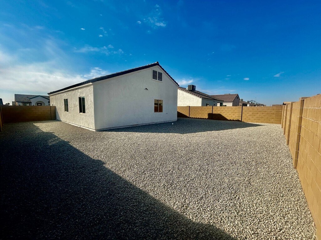 Brand-New 3-Bedroom Home in La Vida Subdivision Be the first to call this charming, newly constructed 3-bedroom, 2-bath home yours! Located in the desirable La Vida Subdivision, this home offers modern living with thoughtful upgrades throughout. This home features 9-foot ceilings that create a spacious and open feel, elegant French doors, and sleek tile flooring paired with granite countertops for a stylish touch. Blinds are already installed for your convenience, and included appliances such as a refrigerator, microwave, stove/oven, washer and dryer, R/O system, and water softener ensure this home is move-in ready. The easy-care landscaping adds to the home's appeal, and its location provides quick and convenient access to the freeway. Don’t miss out on this incredible opportunity—schedule your viewing today!