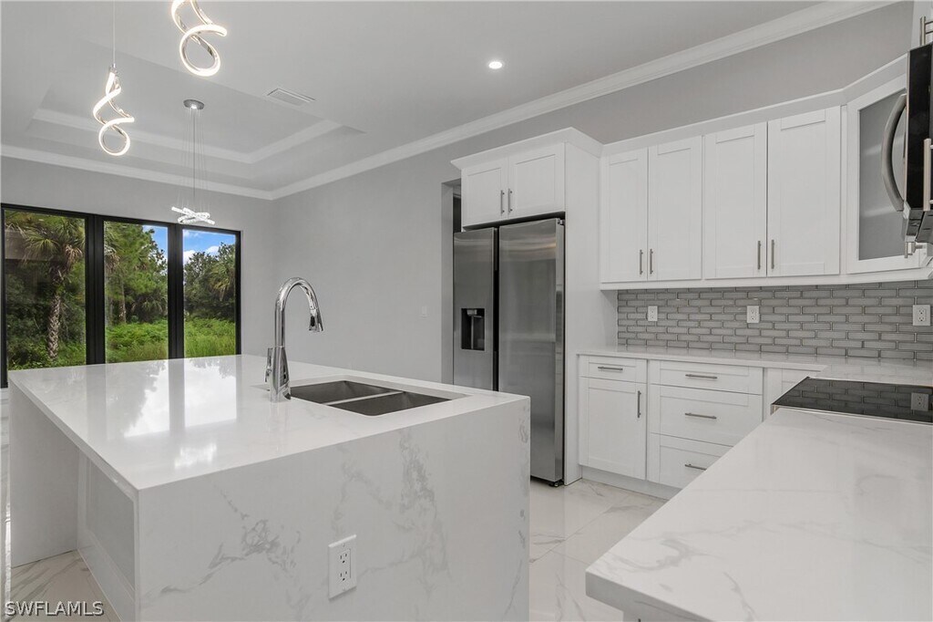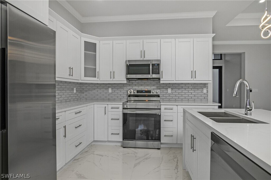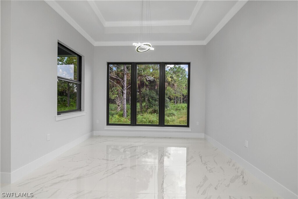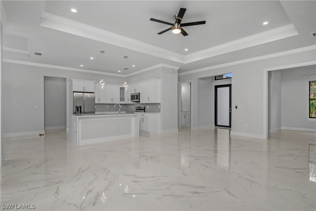 This newly built home in Golden Gate estates offers 3 bedrooms,a den,2.5 bathrooms,and a two-car garage in a prime location. It features numerous upgrades,including a sprinkler system,beautiful landscaping,epoxy-finished garage floors,impact-resistant windows and doors,granite countertops with a waterfall island,and stainless steel kitchen appliances. Modern light fixtures add a stylish touch throughout. Move into this immaculate,ready-to-enjoy home today.