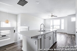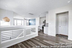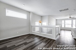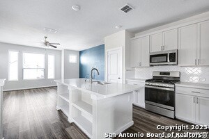 Gorgeous, Modern, Energy Efficient, 3 bedroom 2 full bath and 1 half bath home. Open floor plan, sleek modern kitchen equipped with stainless steel appliances, quartz counters, designer backsplash. Main level bedroom features spa like bathroom, large walk in closet. Downstairs are 2 bedrooms, full bath, laundry room and secondary living area. Washer, Dryer, Water softener included. EV Charger in Garage. Large backyard. Easy access to Loop 1604, IH 10, UTSA, La Cantera.