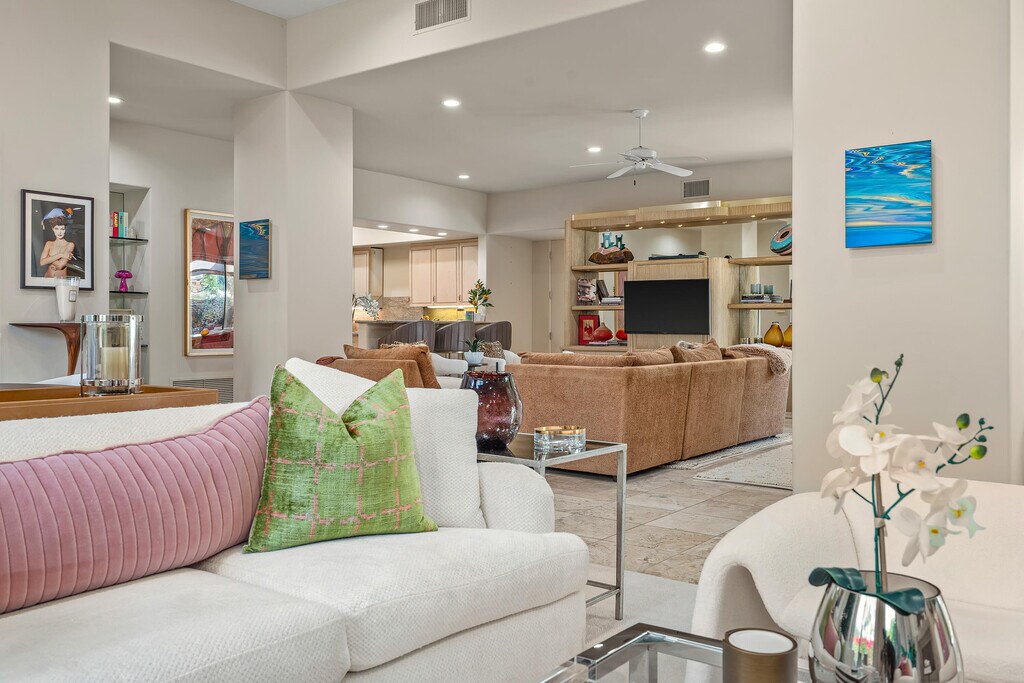 Stunning open-plan home with 4 bedrooms,4.5 bath including the private casita. Located in serene Painted Cove just minutes to La Quinta's Old Town for great shopping and dining. The soaring ceilings and 10 foot sliders capture the southern mountains views. Gourmet kitchen and dining areas take advantage of those same views from every window. Designer furnishing complement this picture-perfect home. Outside,enjoy the big sparkling pool with lots of areas for relaxation and entertaining. This beauty can be your perfect desert vacation. This description cannot do justice to this exceptional home. Just take a look at the pictures and you will see that this is a terrific place to stay.