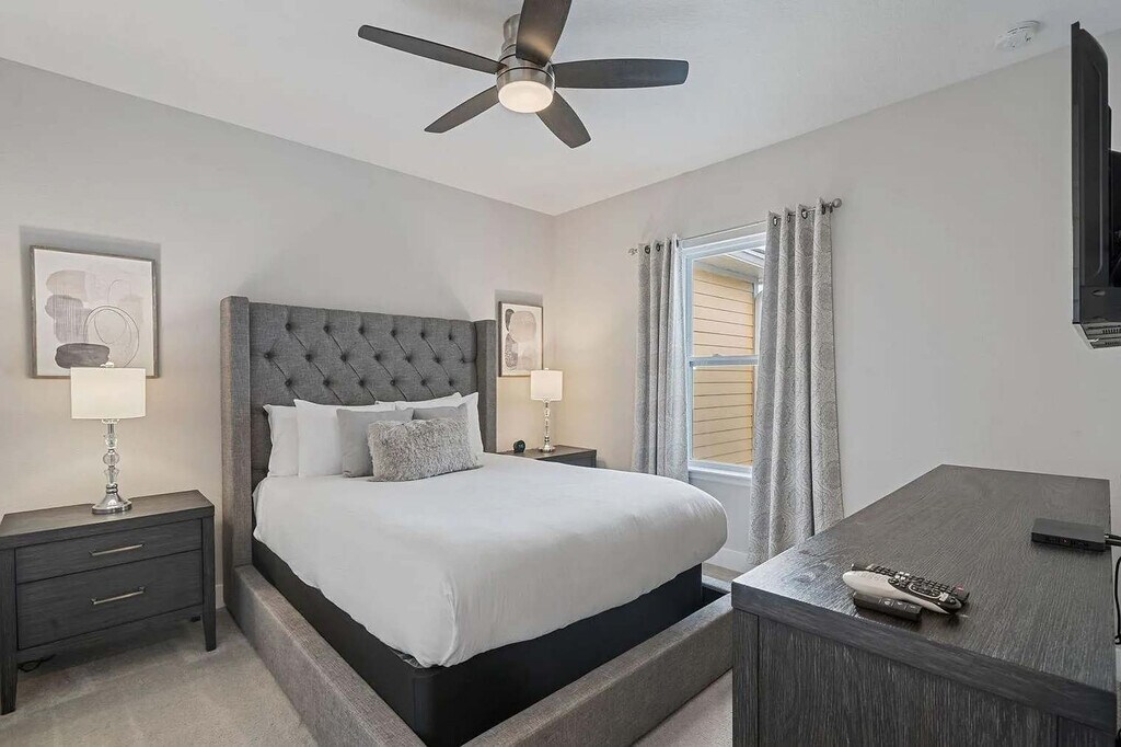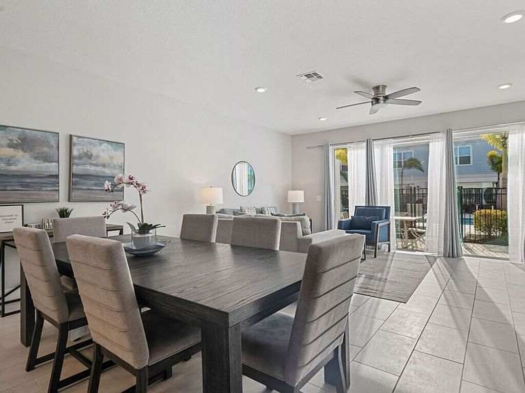 Feel at home in this modern and spacious 3-bedroom villa in Reunion, the perfect home base for your unforgettable Orlando vacation. This villa features 3 spacious bedrooms, 2.5 bathrooms, and a large living area. The large full kitchen is equipped with stainless steel appliances. Enjoy the spacious indoor and outdoor dining area and the free washer and dryer. Parking can accommodate up to two vehicles. Located in the luxury gated community of Reunion, you'll feel right at home enjoying a stroll around one of the many golf courses. Out the back gate, you will find every type of food you can imagine, alligator farms, airboat rides, and a flurry of water parks and places of enjoyment. Disney is 4 miles away, Universal is 20 miles away and SeaWorld is 15 miles away. A car is recommended to explore Orlando and Kissimmee attractions. Reunion is near major highways (I-4), providing quick access to Disney, Universal Studios, and Orlando International Airport. Quiet hours are between 10 PM and 8 AM. In the event you stay beyond the original scheduled check-out time of 10 AM, you may incur a fee of up to $300. There is absolutely no smoking and no drugs allowed inside the home or elsewhere on the property. Only the number of guests indicated on the reservation are allowed to stay overnight, unless otherwise agreed upon in written form. Be considerate while socializing outdoors after 10 PM and before 8 AM and keep excessive noise to a minimum during this time. No fireworks of any kind are allowed. No firearms are allowed on the property, unless kept locked in a vehicle. If guests are found to be in violation of any of these rules, the reservation may be terminated without refund, and/or monetary fines may be pursued. [SI]