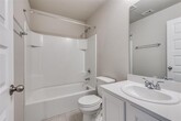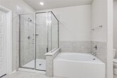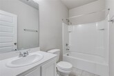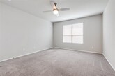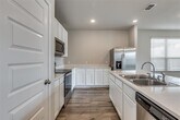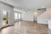 Beautifully 3-year-old updated home with an open floor plan and abundant natural light throughout. The main living area features a large wall of windows, recessed lighting, and a ceiling fan, creating a bright and inviting space. Spacious dining room offers direct access to the patio, perfect for everyday living and entertaining. Luxury vinyl plank flooring flows throughout the first floor including the entry, kitchen, and laundry room, with carpet in all secondary bedrooms. Well-appointed kitchen features ample counter space, 42-inch white cabinets, island with seating, pantry, electric range, microwave, dishwasher, refrigerator, and recessed lighting. Sizable en suite primary suite includes dual sinks, ceramic tile, separate shower, garden tub, and 2 walk-in closets. Private upstairs area is ideal for guests or multi-generational living with a second living area or game room, private bedroom, full bathroom, and walk-in closet. Recent updates include quartz countertops, fresh paint on walls and ceilings with door touch-ups, new garbage disposal, sprinkler system tune-up, landscape refresh, and general maintenance. Full-size laundry room includes additional hanging space. Large backyard will be partially newly sodded and is fully sprinklered. It offers a great outdoor space for entertaining. One cat or small dog allowed with landlord approval; recent vet records and rabies vaccination are required, prior to move in.