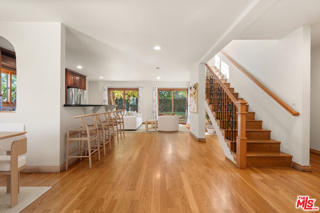 Stephanie YoungerDraped in vibrant bougainvillea and enriched with classic Mediterranean character, this North Kentwood residence offers an exceptional leasing opportunity in one of the neighborhood's most desirable pockets. Sun-filled interiors, 9-foot ceilings, and hardwood floors throughout create a warm and elegant atmosphere from the moment you step inside. The main level features an effortless flow between spacious living and family areas, including an inviting fireplace-centered living room ideal for relaxed gatherings. The open kitchen, anchored by a generous island, overlooks the expansive, park-like backyard. Wood-framed sliding glass doors invite seamless indoor-outdoor living, leading to a wide grassy lawn framed by mature trees that provide both shade and serene privacy. Two versatile bedrooms and a full bath on the main floor accommodate guests, remote work, or multi-generational needs, while recessed lighting, central heat, and air conditioning ensure comfort in every season. Upstairs, the extra-large primary suite offers a true retreat, complete with vaulted ceilings, a cozy fireplace, a walk-in closet, and south and west-facing windows that capture natural light throughout the day. Two additional bedrooms and a well-appointed hall bath complete the upper level. A generous front balcony extends the living space outdoors and offers a peaceful setting to enjoy coastal breezes. Set on a quiet, private street just moments from Westchester's most beloved amenities, this exceptional lease combines space, style, and the relaxed sophistication that defines North Kentwood living, a rare opportunity to experience comfort and charm in an exclusive setting. Minimum 720 credit score, and income must be at least 2x the monthly rent. Garage parking is not included.
