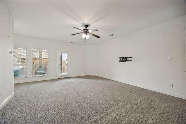 Situated in the heart of the Shops of Legacy, this beautifully maintained three story townhome offers a blend of comfort, style, and convenience. With 3 bedrooms and 3.5 baths, the home is thoughtfully designed across three levels. The main living area features hardwood floors, a cozy stone fireplace with gas logs, and a well appointed kitchen with granite countertops, a gas range, and abundant storage. Designed with flexibility in mind, the home includes a spacious upstairs bedroom or bonus room with balcony access: perfect for a media space, bedroom, office, or guest retreat. The primary suite offers a true retreat with a jetted tub, separate shower, and a walk-in closet. Brand new carpet in the bedrooms adds a fresh touch, and a full appliance package, including washer, dryer, and refrigerator is included. Complete with a two car garage and ample guest parking, this home offers low maintenance living just steps from premier dining, shopping, and entertainment.