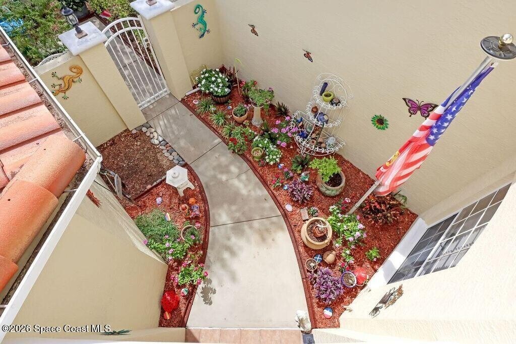 This is a large three bed 2.5 bath home with large office (with closet so could be a fourth bedroom),2 balconies,sunroom and court yard. The subdivision is GATED,has a small club house and heated pool for all year enjoyment. DOG FRIENDLY home with great walking areas at Manatee Park and paved sidewalks. Close to 528,Airport,Orlando attractions,Space Center,shopping and restaurants. Make your appointment to day!!. MLS # 1068552