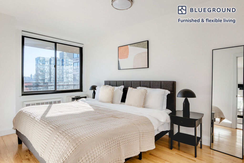Feel at home wherever you choose to live with Blueground. You’ll love this cozy Manhattan Valley furnished one bedroom apartment with its modern decor, fully equipped kitchen, and pretty living room with great high floor views. Ideally located, you’re close to all the best that New York has to offer! (ID #NYC1321) The advertised rate of $5,090/month is the lowest available price, based on a 12 month(s) stay with a move-in date of December 1, 2027. Rates vary depending on the duration of stay, season, and other parameters. For exact pricing and additional pricing components, please visit our website and enter your desired move-in and move-out dates. The rate is applicable when billed upfront; it can be higher if billed in multiple payments. Brokers are welcome to reach out. Were you looking for an unfurnished lease? Try Blueground instead and upgrade from unfurnished to furnished living: - Furnished at rates comparable to unfurnished - No setup or furniture costs - save thousands - Move-in ready - save time, just bring your suitcase Designed with you in mind As with any Blueground apartment, you’ll find a thoughtfully designed space complete with beautiful furniture and a fully equipped kitchen in this one bedroom property. And, thanks to our superior quality mattresses, luxury linens, and towels, you can relax knowing you’ll always feel comfortably at home. When you’re ready for some fun, you can take in the New York vibes or bring the entertainment to you with the premium wireless speaker or smart TV. This apartment also offers in-apartment laundry. Sleeping arrangements King Bed, 70.8in/180cm Amenities Building amenities unique to this one bedroom apartment include an on-site: - Doorman - Dryer - Elevator - Washing machine - Pets allowed - Playground Arrival and ongoing support The entire apartment is yours to enjoy! Throughout your stay, you’ll have access to our Client Experience team through the Blueground App. You can schedule additional cleanings, submit maintenance requests, and view our neighborhood recommendations with just a few taps. We’ll share all details upon confirmation of your stay. Other things to note Building amenities may have an extra cost. This Blueground apartment has flexible lease options, allowing you to book it for one month, a year, or more. Pets are welcome, though weight limits and breed restrictions apply and may incur fees. Brokes CYOF. We take great pride in ensuring every photo displayed is shot in our own units with our actual furnishings. That said, we regularly refresh our decor and furniture arrangement, which may differ from what’s pictured. [SI]