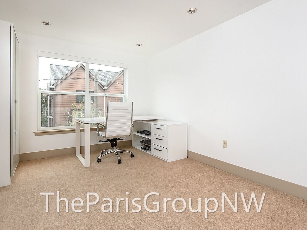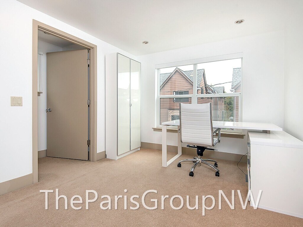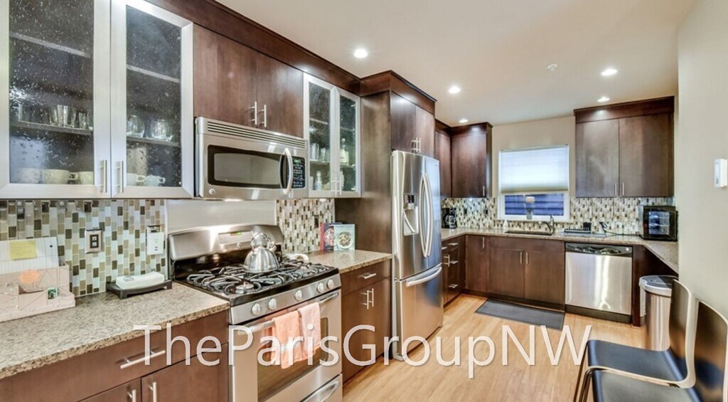 Outstanding opportunity to rent hard to find modern townhome with 1 car garage + parking pad, ideally located just 1 block from Green Lake, restaurants, amenities and major bus routes to Downtown Seattle, University District and Bellevue. Well designed 2008, 1350sf home offers spacious, bright & open main floor living area with amazing gourmet kitchen featuring endless granite counters & designer cabinets, breakfast bar, stainless appliances & gas range open to the dining and living rooms, XL 3rd floor loft style office, closet and room for a day bed or another desk, adjoining 3/4 bath leading to convenient laundry closet with full size W/D and into a large bedroom with wood floors and walk-in closet. Wide open king size master on top floor boasts vaulted ceilings, mounted wide screen TV, luxurious tiled bath with soaking tub & walk in closet. French door opens to private balcony with scenic territorial views. First floor tiled entry provides extra storage in double wide closet and access to both the garage and parking pad, which could also be used as an open patio. LET’S TOUR! Contact our leasing department at . Tenant occupied, so please allow at least 24-48 hours to schedule a viewing. MUST TOUR TO APPLY! No exceptions. If you pre-apply your application will be deleted and you will have to apply again once you've toured with a leasing agent in person or virtually. TERMS: First month’s rent of $3,700 with a security deposit of $3,300 plus a $400 carpet cleaning service charge due at signing. No smoking/vaping with 1 pet considered on c/c basis with additional pet deposit. Application with qualification details available online at with $50 per adult screening fee. The Paris Group NW is an Equal Housing Opportunity provider. We do not accept reusable tenant screening reports.
