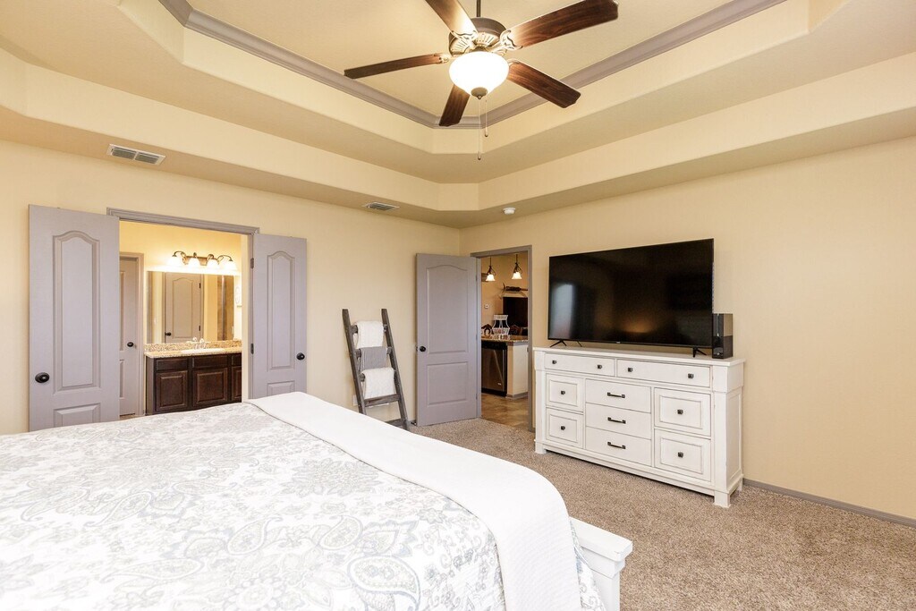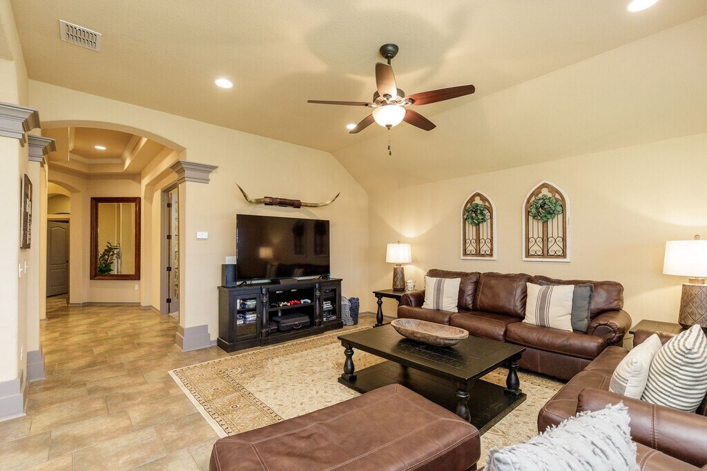 7921 Pavo Real in Corpus Christi, TX delivers space, style, and versatility in one beautifully designed package. This expansive 4-bedroom, 3.5-bath home is built for both everyday comfort and effortless entertaining. The oversized primary suite is a true retreat, featuring a relaxing soaking tub, a sleek tiled walk-in shower, dual vanities, and a generous walk-in closet. A private junior suite with its own full bath adds flexibility, perfect for guests, multigenerational living, or a home office setup. At the heart of the home, the custom kitchen shines with granite countertops, rich cabinetry, a large island with breakfast bar seating, a gas cooktop, and stainless steel appliances, ideal for gathering and creating memorable meals. Inside, you’ll find soaring ceilings, a formal dining space, spacious secondary bedrooms, and stylish finishes throughout. Durable tile and luxury vinyl plank flooring flow seamlessly across the entire home (all carpet has been removed). Step outside to a covered patio overlooking a large, fenced backyard with lush landscaping, perfect for relaxing evenings or weekend get-togethers. With central heating and air, plus a prime southside location close to shopping, dining, and medical facilities, this home truly has it all. Homes of luxury like this don't last long. Call today to schedule your viewing!
