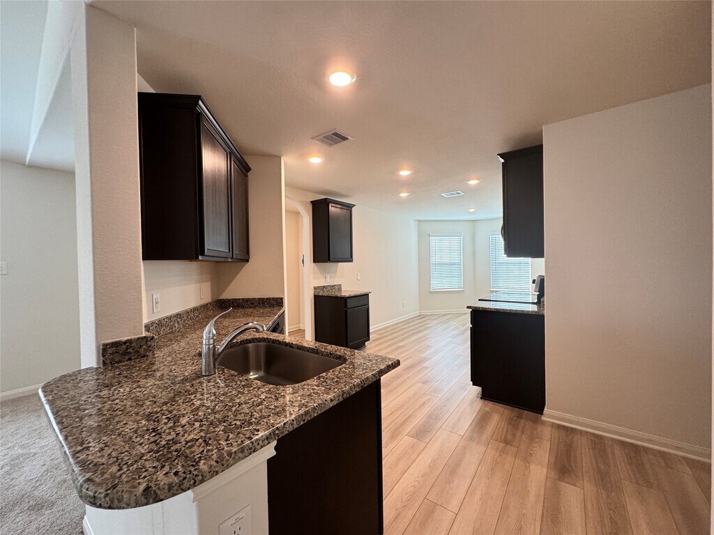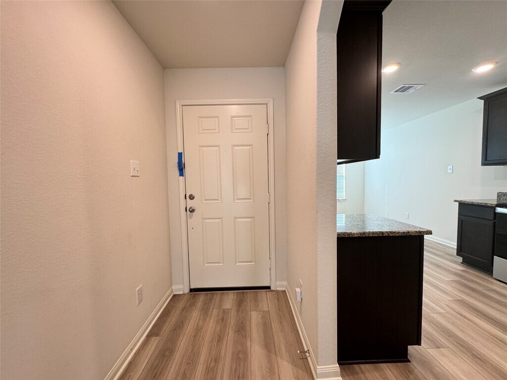 Beautiful one-story home featuring 3 bedrooms,2 bathrooms,and a 2-car garage in the Vacek Country Meadows community. This home boasts 2" faux wood blinds,vinyl flooring,and carpet throughout. The spacious family room comes with vaulted ceilings,creating an open and airy feel. The kitchen,which opens to the family room,includes an eat-in area,granite countertops,espresso cabinets,and Whirlpool stainless steel appliances,including a refrigerator. The primary bedroom offers an ensuite bathroom with a soaking tub,a separate shower,a vanity area,and a walk-in closet. There are two additional well-sized secondary bedrooms and a versatile flex room that can serve as a study,game room,formal dining room,or guest room. The backyard,with no rear neighbors,backs up to open farmland,providing a serene and private outdoor space. This home is conveniently located just minutes from the shops and restaurants at Brazos Town Center,including HEB and Target. Virtual Tour Available. MLS# 834601
