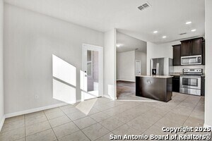 ***MOVE-IN SPECIAL: TWO WEEKS FREE***Located near Alamo Ranch, this stunning brick and stone residence offers a thoughtfully designed split floor plan for added privacy and flexibility. The secondary bedrooms are situated at the front of the home, while the spacious primary suite is tucked away at the back. The kitchen is equipped with a center island, ample counter space, and a refrigerator, and it opens to a dedicated dining room-perfect for hosting or everyday dining. The primary suite features a luxurious en suite with a separate garden tub, walk-in shower, and a generous walk-in closet. Enjoy the outdoors with a covered patio and fully fenced backyard for added privacy. With convenient access to Loop 1604, Lackland AFB, and nearby shopping and dining, this home delivers both comfort and accessibility.