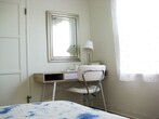 Fully furnished one-bedroom apartment (second floor walk-up) is nestled in a green oasis, behind a security gate. Its windows look out on a garden through the branches of two Chinese elms. Amenities include basic WiFi, central AC and heating, and Miele washer + dryer in the kitchen. The living room has a comfy couch, reading chair, and smart TV with basic Roku programming. The kitchen is fully equipped, and bathroom has a full-size tub and shower fed by a on-demand water heater. Queen size bed and small workspace with desk and chair in the bedroom. A WeHo parking permit can be purchased for street parking. For an additional monthly fee, a private enclosed garage and storage unit is available. All tenants are welcome to use of the patio and garden areas. Non-negotiable items: No smoking, No pets.