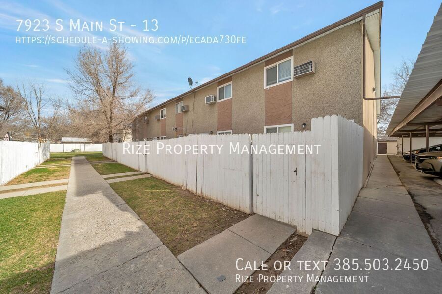 Beautiful 2-bedroom, 1-bathroom end-unit townhome located just minutes from historic Midvale and Garden Village! This well-maintained home features a dishwasher, microwave, and washer and dryer hookups for your convenience. Enjoy a spacious enclosed back patio—perfect for relaxing or entertaining—as well as a private storage unit for all your extra belongings. The property includes one assigned parking space, with additional overflow parking available. Stay comfortable year-round with wall unit A/C and electric baseboard heating. Open space and common areas are professionally maintained by the HOA. Just a short stroll to Midvale City Park and the shops, dining, and entertainment along Main Street—this is a location you’ll love! This is a no pet property. Easy to tour, Call Resident responsible for renters insurance and all utilities including: -$75 per month for water/sewer/trash and gas. -$11 per month for utility billing fee -Electricity will be based on usage -$15 storage unit -$25 common area maintenance Move in Fees- $350 non-refundable cleaning fee $275 non-refundable lease initiation fee All information contained in this advertisement is deemed reliable but is not guaranteed. Applicants are solely responsible for verifying the accuracy and completeness of all details provided. Covered Carport
