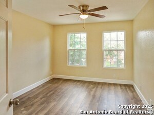 Welcome to 7923 Veleta in the gated Palo Blanco community. This freshly painted home offers a bright, open feel with no carpet throughout. Enjoy a spacious 17x14 living room and a generous 15x12 kitchen with plenty of storage and counter space. All bedrooms are upstairs, including a large primary suite with walk-in closet and private bath. A huge 33x19 covered patio overlooks a big, level backyard-perfect for relaxing or entertaining. Additional features include a two-car garage, double-pane windows, and Northside ISD schools. Up to two small dogs with pet fee of $300. Available soon at $1,950 per month.