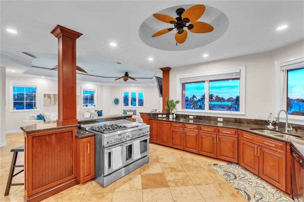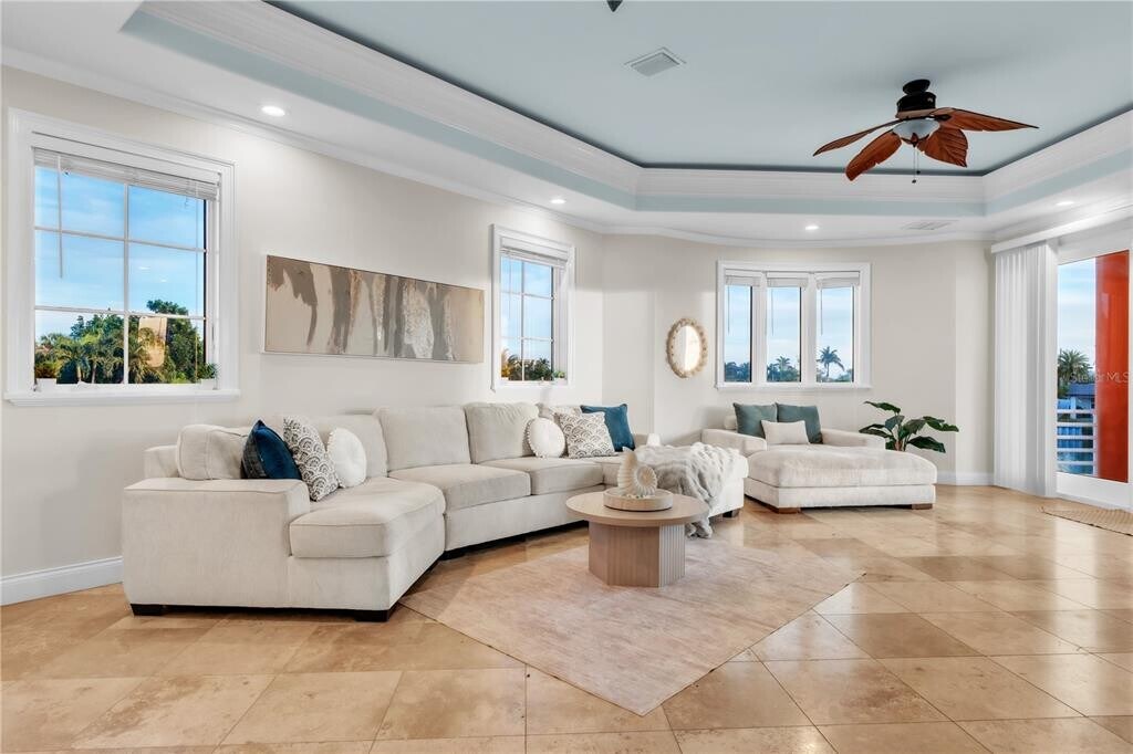 Welcome to your private waterfront retreat in the exclusive Causeway Isles of St. Petersburg—just one mile from Treasure Island Beach. This expansive,three-story luxury home designed for comfort,relaxation,and unforgettable coastal living. With 5 full bedrooms,8 total beds,multiple balconies,a private elevator,and sweeping water views throughout,this home is the perfect escape for large families,groups,or anyone seeking high-end living on the water. As you step inside,bright open-concept living spaces immediately set the tone for a serene getaway. The open-concept great room is wrapped in windows,including a dramatic slanted wall of glass that frames sweeping views of the Intracoastal. This space is furnished with brand-new designer pieces,plush seating,fresh coastal accents,and soft,airy tones that instantly make you feel at home. With direct access to a spacious waterfront balcony where you can enjoy morning coffee,evening cocktails,and sunsets that paint the sky every night. The fully stocked kitchen includes solid wood cabinetry,granite countertops,stainless steel appliances,a gas range,and everything you need to cook and entertain with ease. The adjoining dining area offers seating for all occasions. This home comfortably sleeps large parties with 5 bedrooms and 8 beds,thoughtfully arranged across multiple floors for privacy and convenience. Several rooms have balconies or water views,and all are designed in a resort-style environment with high-quality linens,comfortable mattresses,and plenty of storage. The top-floor owner’s suite is a true sanctuary with its expansive balcony,large walk-in closet,and an ensuite bathroom featuring dual vanities,rich wood cabinetry,soaking tub,and a natural-stone walk-in shower. Every bedroom is bright,inviting,and designed to make long-term living both comfortable and effortless. Take the elevator or stairs down to the ground level and step right into your private outdoor oasis. The fenced backyard includes a heated saltwater pool,bubbling spa,loungers,daybeds,and outdoor dining areas perfect for grilling,relaxing,or sunbathing. Bring your boat or rent one locally—the deep-water dock offers easy access to the Intracoastal Waterway and the Gulf of Mexico with no fixed bridges. Dolphins and manatees are regular visitors,and fishing right from the dock is a guest favorite. Additional amenities include: • Private elevator to all three floors • Oversized 3-car garage with plenty of driveway parking • Smart TVs,fast WiFi,and workspace areas • Fully stocked kitchen with cookware,utensils,and basics • Washer/dryer • Beach gear and pool essentials • Pet-friendly fenced yard (optional with approval) The location is unmatched—just 5 minutes to Treasure Island Beach,10 minutes to St. Pete Beach,and a quick drive to Downtown St. Petersburg’s restaurants,museums,nightlife,and waterfront parks. Grocery stores,marinas,boat rentals,and top dining are all close by. This residence is ideal for anyone seeking long-term luxury waterfront living,offering space,comfort,and an unmatched setting to enjoy the best of the Florida coast every single day. MLS# TB8449650