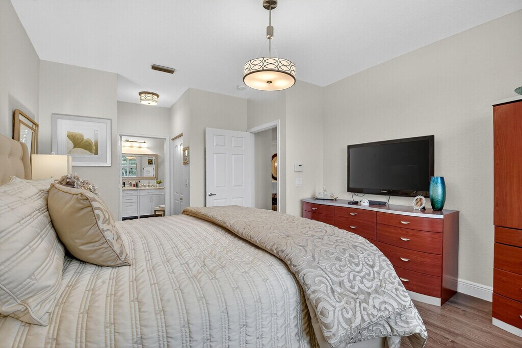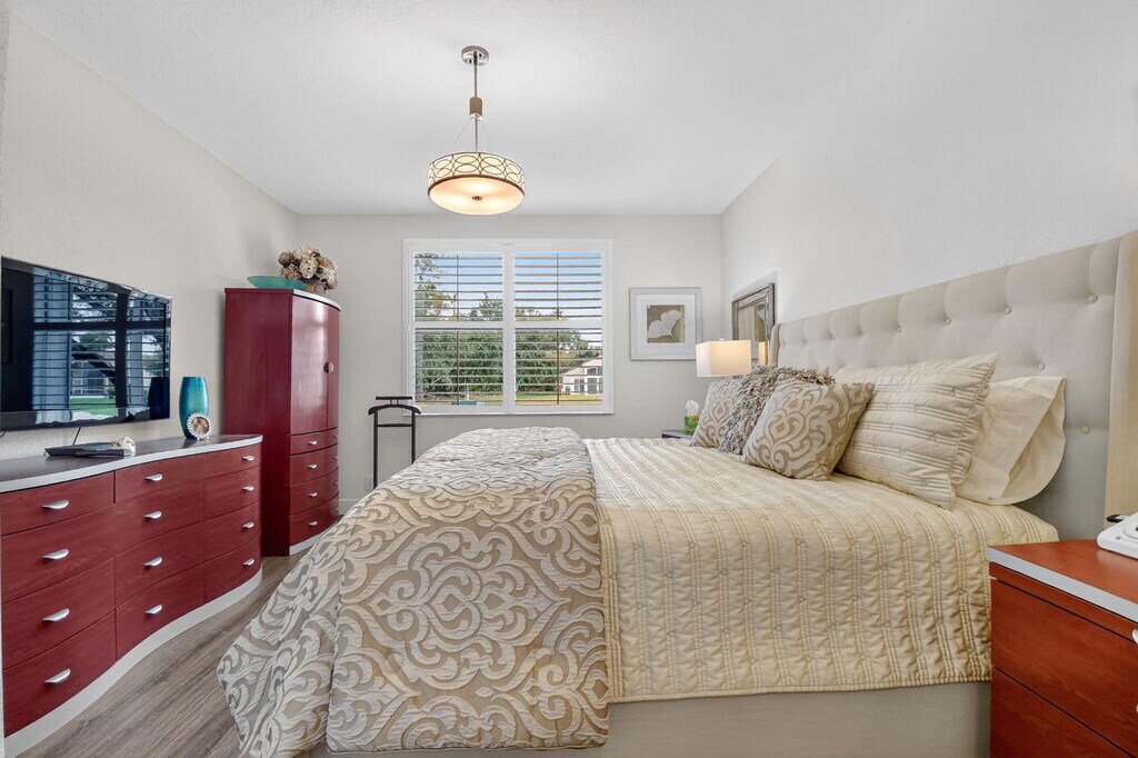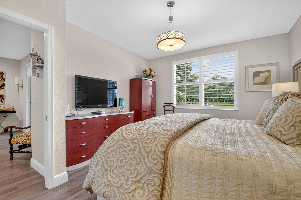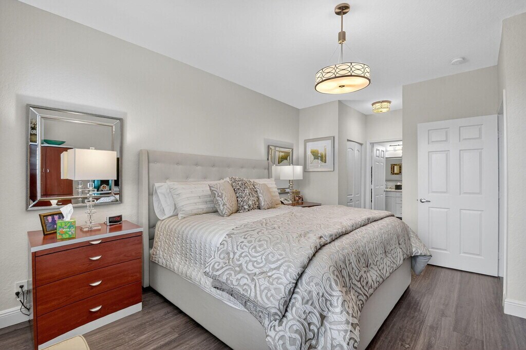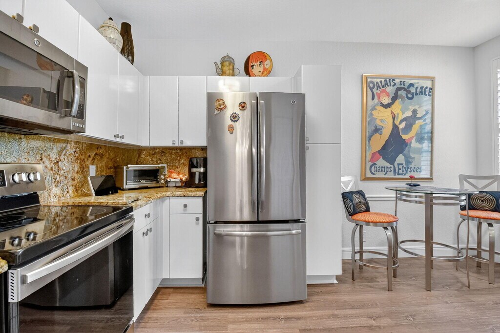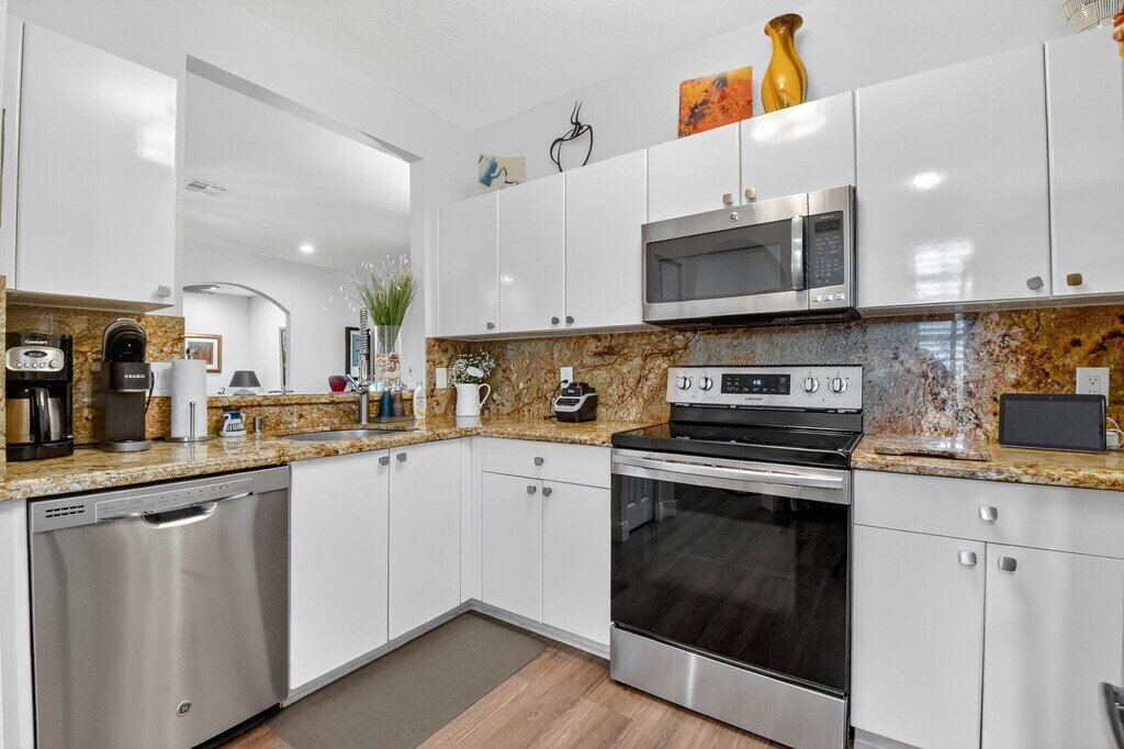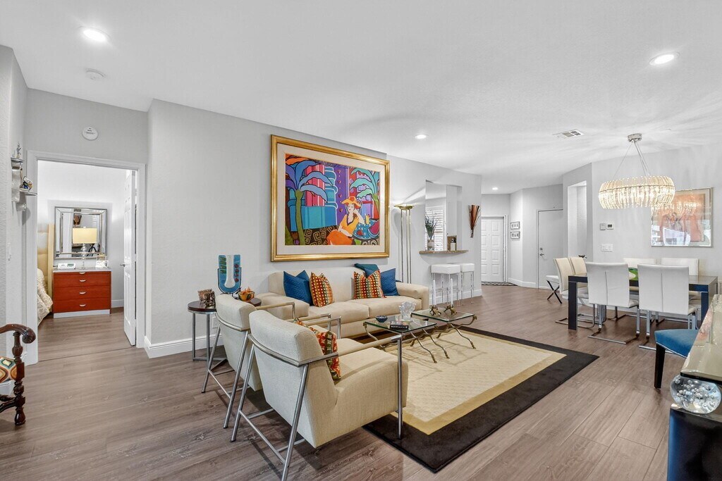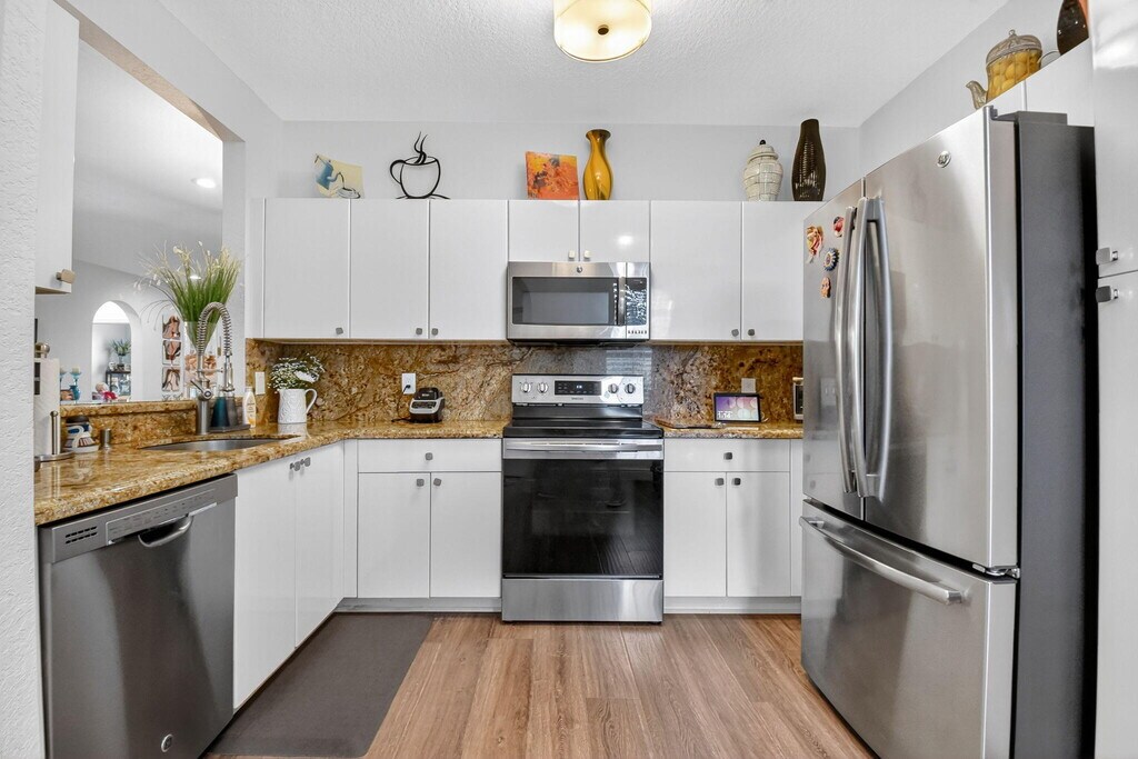 Beautifully Decorated Lakeview Condo! Meticulously Maintained, Resort-Style Amenities, Prime Location. Features an enclosed screened lanai, stylish vinyl flooring, and meticulous upkeep. Enjoy resort-style amenities: renovated clubhouse, heated/chilled saltwater pool, fitness center, pickleball, tennis, shuffleboard, putting green, bocce, library, billiards, and more. 24-hour manned gate. The Grove offers prime location near shopping, medical, and cultural venues. Florida living at its finest!