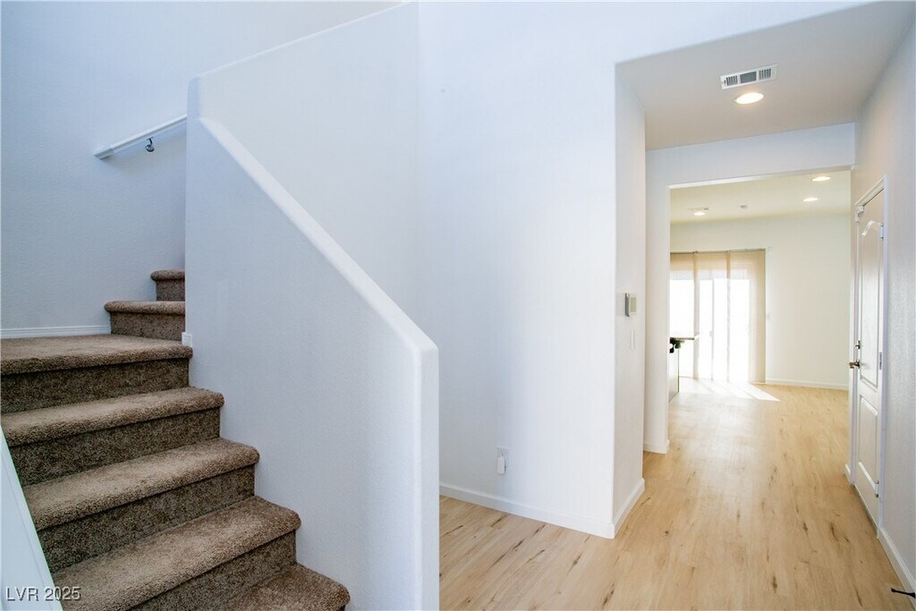 Amazing two-story home in Providence!! Specifically located in Northern Terrace where residents have access to the community clubhouse and pool! This home has so many new features, new paint throughout the interior, new plank flooring on the 1st floor, new ceiling fans w/remotes throughout, new tile flooring in 2nd floor laundry room & bathrooms, all bathrooms w/new faucets & light fixtures, new faux wood blinds on all windows, patio slider w/new sliding panels, & new pavers for backyard patio. Kitchen features stainless steel appliances, new cabinet pulls/handles, an island, & granite countertops! Secondary bedrooms have new LED recessed lights in addition to the ceiling fan! Primary bathroom features two closets, one is a walk-in, two sinks, & a shower w/sliding glass doors. Close to Somerset Academy Skye Canyon Campus and two parks, Sky View Park & Huckleberry Park!
