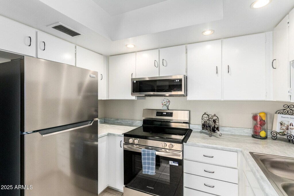 Welcome to this lovely 2 bed/2bath condo located in a premier Old Town Scottsdale location. Enjoy the convenience & security of a 24 hr guard-gated entrance and reserved underground garage parking. The home features fresh interior paint,New kitchen counters,sink,disposal,plus brand new carpet throughout including patio. Movein ready with some modern updates. The community amenities feature 2 sparkling pools,a relaxing spa,fitness center,art studios,library and even a 9-hole golf course. Utility closet in unit,storage unit & same floor laundry room. Deeded underground parking.HOA does include AC,heat & trash service making for stress-free living. Dont miss this opportunity to own in one of Scottsdales most desirable and activity-rich community close to shopping & restaurants!