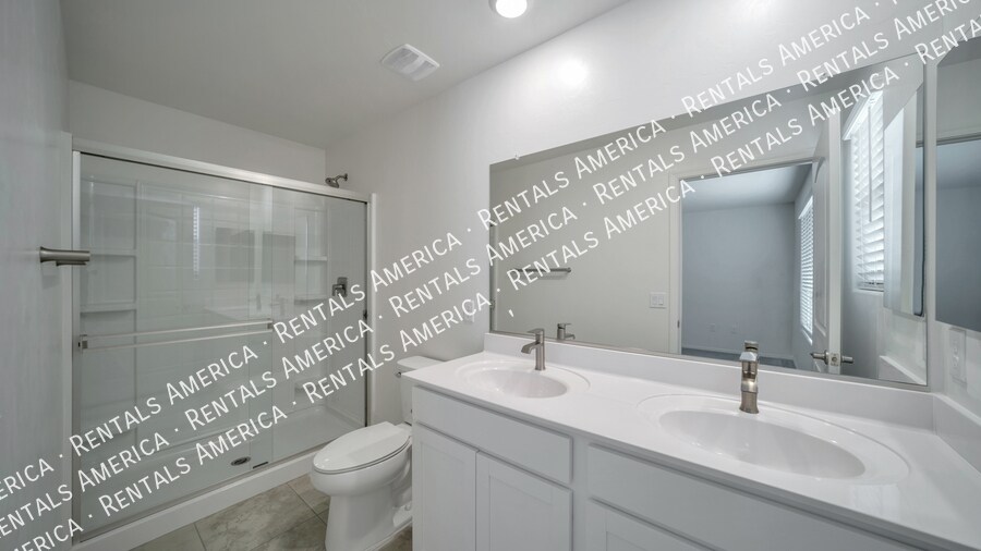 Enjoy this new 3 bedroom, 2-bathroom home in a master-planned and gated community with tons of amenities. A light gray color palette gives this home a modern vibe, from the easy-care ceramic tile to the bedroom carpeting. The great room provides plenty of space for everyone and opens to the kitchen with a roomy pantry closet and all-new stainless appliances. (A second new refrigerator is available in the garage for beverages are included. The primary suite comes with dual vanity sinks, executive height counters, a walk-in shower and large walk-in closet. The beautifully landscaped backyard is ready for entertaining, with a covered patio and gorgeous pavers. Check out these amenities: *Walking and biking trails *Tennis courts *Pickle ball *Soccer field *Splash pad and large park, right around the corner with gorgeous mountain views and breezes. Small dogs are OK but sorry, no cats. Visit our website to schedule your own private tour. One-Time Admin Fee: $300. Monthly Service Fee: 1%. Refundable Pet Deposit: $300/Pet, if applicable. Resident Benefits Package: $39/month. Helping Heroes Discount Available! Equal Housing Opportunity Dryer Garage No Pets Allowed Washer