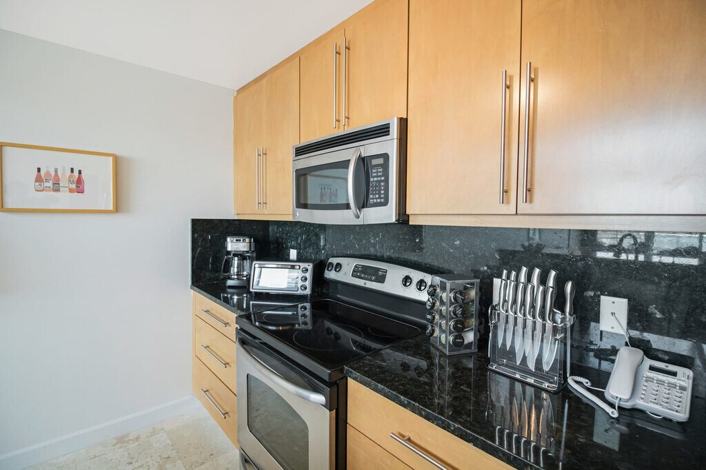 Feel at home in this Miami apartment at Roami at Adagio, where panoramic bay views and sleek design define your experience. Located in scenic North Bay Village, this centrally located property offers a tranquil yet connected escape at the center of it all. Adagio offers stunning views of Biscayne Bay and the Atlantic Ocean from your spacious living room. This property is the perfect base for discovering all that Miami has to offer. Enjoy resort-style amenities including a heated waterfront pool, on-site gym, and outdoor bar, open from sunrise to sunset. The fully equipped kitchen and comfortable dining areas make this home ideal for both relaxation and entertaining. This listing is a booking for two units that are close together if not side by side though they are not connected, each featuring its own living space and bathroom(s). You can also enjoy an in-unit washer and dryer, a smart-TV with streaming apps installed, and complimentary coffee. Onsite parking is available at $15 per vehicle, per night. Discover a tranquil retreat with all the excitement of Miami just moments away at Roami at Adagio, nestled in the serene neighborhood of North Bay Village. Known for its scenic waterfront views and laid-back vibe, this hidden gem offers the perfect balance of relaxation and access to the city’s top attractions. With easy access to the vibrant nightlife of Miami Beach and the cultural landmarks of downtown Miami, you’ll find yourself surrounded by everything you need for the perfect getaway. Nearby attractions include North Bay Village Park, Miami Beach, Wynwood Walls, The Venetian Causeway, Miami Design District and Fisher Island. This is a smoke-free environment, and any sign of smoking is a violation of the stay agreement, which may result in immediate termination and recovery fees beginning at $500. There is a $200 penalty for removing smoke detectors and a $200 penalty for lost key fobs. Guests must agree to not disturb neighbors at all times during the stay and must observe quiet hours from 9pm-8am each day. A pet fee may be charged for guests traveling with an emotional support animal. To abide by all legal requirements and HOA rules, you will be asked to provide a copy of your official government-issued photo ID, confirm your contact information, pass through our verification portal and, in some instances, complete a criminal background check. Minimum age requirement of primary person booking should be 22 years old for out of town guests and 25 years old for local guests. No weapons or drugs allowed; zero tolerance means police will be called for violating this rule. Long-term guests will be subject to a background search and credit check. Check-in is at 4 PM, and check-out is at 11 AM (with a $75/hr late fee). No outside guests are allowed without permission. Only one towel per guest per stay is provided. A valid photo ID is required to complete the booking. [SI]