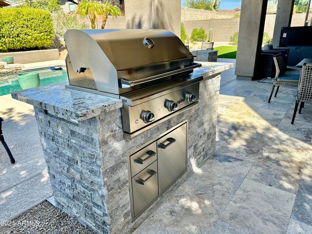 Ask Marnie for season rates. Moving to Scottsdale? Building? Looking for the perfect home close to North Scottsdale's Championship-level GOLF,Dining & Shopping? THIS 3-BEDROOM PLUS OFFICE IS THE HOME FOR YOU! Your FULLY FURNISHED,Single-Level residence is beautifully updated featuring a sleek,modern interior with an open Great Room ideal for effortless entertaining and everyday comfort. The fully outfitted kitchen has WOLF and Subzero appliances,full-sized wine fridge,beautiful butcher-block prep island & large breakfast area. Relax in the Master Bedroom flanked by windows allowing the outdoors in,providing a truly Peaceful Oasis. A wonderful split floor plan allows privacy for the primary suite,from two secondary bedrooms. The open plan living room and dining room overlook a private backyard with lovely lounging areas and the perfect balance of sun and shade. Enjoy the sunny backyard,sparkling heated pool,outdoor fireplace & built in outdoor barbeque. There are also some bonus grapefruit and lemon trees in the side yard to enjoy! The 3-car garage has finished epoxy floors with ample storage space. Don't miss out on Luxury Living in the exclusive Grayhawk Raptor Retreat Community with 24/7 guard-gated security,community Pools,Tennis,and miles of Hiking / Biking Trails. Contact to view so you can start enjoying everything this fabulous home offers! Live the active,resort-style life you've been dreaming of in one of Scottsdale's most sought-after communities.