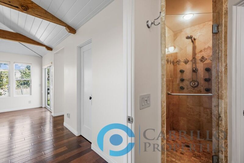 Stunning, spacious La Jolla home with a serene yard and deck, located in the highly sought-after La Jolla Shores neighborhood. This beautiful residence features 5 generously sized bedrooms and 4 elegant marble-tiled bathrooms (3 en-suite), including a luxurious jacuzzi tub and walk-in shower. Rich wood floors, high ceilings, and recessed lighting create a bright, refined interior throughout. Enjoy a large two-car garage with built-in storage, ample off-street parking, and secure bamboo fencing behind a landscaped easement shaded by mature pine trees. Outdoor spaces include a shady front porch, a large back patio with seating, and a lush, well-maintained backyard featuring an orange tree, palm tree, and tropical landscaping—all offering exceptional privacy and tranquility. The home also includes a private guest suite with its own bathroom, kitchenette, and separate exterior entrance, ideal for visitors or extended stays. Just a short walk to La Jolla Shores Beach, the park, and popular restaurants, with award-winning schools, close proximity to UCSD, and easy freeway access to all of San Diego. Biweekly gardening service included. Tenant pays all utilities. Pets allowed with restrictions and $50/month pet rent per pet. Co-signers allowed. Available now! To set up a showing please call or go to: Cabrillo Properties DRE#02 Frazee Rd Suite 500 San Diego, CA 92108 - Leasing 3D Walkthrough: Coming soon!
