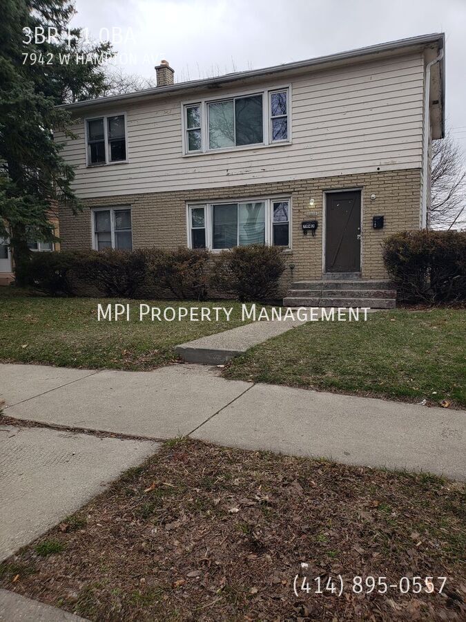 Property Details: *Bedrooms: 3 *Bathrooms: 1 Rental Information: *Monthly Rent: $1350 *Security Deposit: $1350 *Lease Term: Month to Month ****1/2 off First Month's Rent Amenities: *Parking: 1 Parking space *Heating/Cooling: Forced Air Heating *Pet Policy: No Pets *Living room, Stove/ Refrigerator, Hardwood floors, Ample kitchen cabinets, Non-Smoking Building Property Description: Welcome to this charming upper unit located at 7942 W. Hampton Ave, Milwaukee, WI. This delightful 3-bedroom, 1-bathroom home offers a comfortable living space with beautiful hardwood floors and ample kitchen cabinets. The living room is spacious and includes a stove and refrigerator for your convenience. The property features forced air heating to keep you warm during the colder months. A dedicated parking space is available for your convenience. Please note that this is a non-smoking building and pets are not allowed. McGovern Park - 1.5 miles Havenwoods State Forest - 1.8 miles Lincoln Park - 1.9 miles Milwaukee Public Library - 1.7 miles Sherman Park - 1.5 miles Silver Spring Neighborhood Center - 1.2 miles Milwaukee Public Museum - 2 miles Mayfair Mall - 2 miles Milwaukee County Zoo - 2 miles Wisconsin State Fair Park - 2 miles Situated in a vibrant neighborhood, this home is close to several notable landmarks and attractions. Enjoy a scenic walk along the Milwaukee RiverWalk, just 6.8 miles away, or explore the rich history at the North Point Lighthouse, located 7.5 miles from your new home. Sports enthusiasts will appreciate the proximity to American Family Field, only 5.5 miles away, where you can catch a Milwaukee Brewers game. Neighborhood Insights: The neighborhood around 7942 W. Hampton Ave is a blend of residential charm and urban convenience. You'll find a mix of historic homes and modern amenities, creating a unique and welcoming atmosphere. The area is well-connected with public transportation options, making it easy to navigate the city. For those who enjoy outdoor activities, nearby parks and green spaces offer plenty of opportunities for recreation. The Mitchell Park Horticultural Conservatory, also known as The Domes, is just 5.8 miles away and provides a beautiful setting for a relaxing day out. Foodies will love the variety of dining options available in the area, from local eateries to popular restaurants in the Historic Third Ward, only 6.9 miles away. The Milwaukee Public Market, 6.7 miles from the property, is a great spot to explore local vendors and enjoy fresh, delicious food. This upper unit is perfect for anyone looking for a comfortable and convenient place to call home in Milwaukee. With its affordable rent and proximity to key landmarks and attractions, it offers an excellent living experience in a dynamic neighborhood. Applications will be given out at the open house showing.