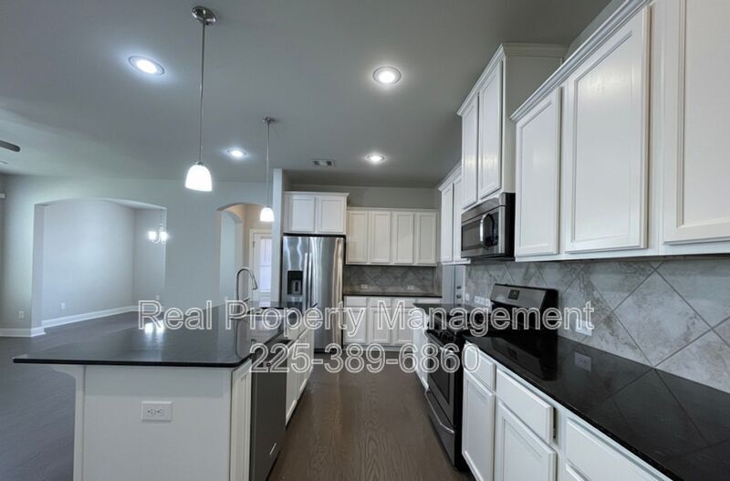 Discover your new home in the highly sought-after Pelican Lakes subdivision. This beautiful 3-bedroom, 2-bathroom residence offers convenience and modern comfort, located just minutes from LSU's campus, premier shopping, and popular local dining. The home features an inviting open floor plan, perfect for entertaining and daily living. The sleek, modern kitchen is a standout, boasting pristine white cabinetry, elegant granite countertops, a stylish tile backsplash with a neutral stone pattern, and updated stainless steel appliances, including a gas range and built-in microwave. The large island offers additional prep space and casual dining. For added convenience, a washer and dryer is included. Relax in the generous master bedroom. Relax in the generous master bedroom. The accompanying master bathroom provides a true retreat with a deep soaking tub, a separate walk-in shower, and ample closet space. Enjoy the contemporary feel with recessed lighting, pendant fixtures over the sink/island area, and attractive dark wood-look flooring throughout the main areas. Outdoor living is a breeze with the covered patio, and the property includes a two-car garage and driveway for convenient family parking. Schedule your viewing today and secure this fantastic home! Call us at No pets. Property viewing is mandatory before applying. Application requirements: > Credit score: 550+ > Rental history verification > Background check > Income = 3x rent > All adults must apply Amenities: two-car garage, patio, community pool
