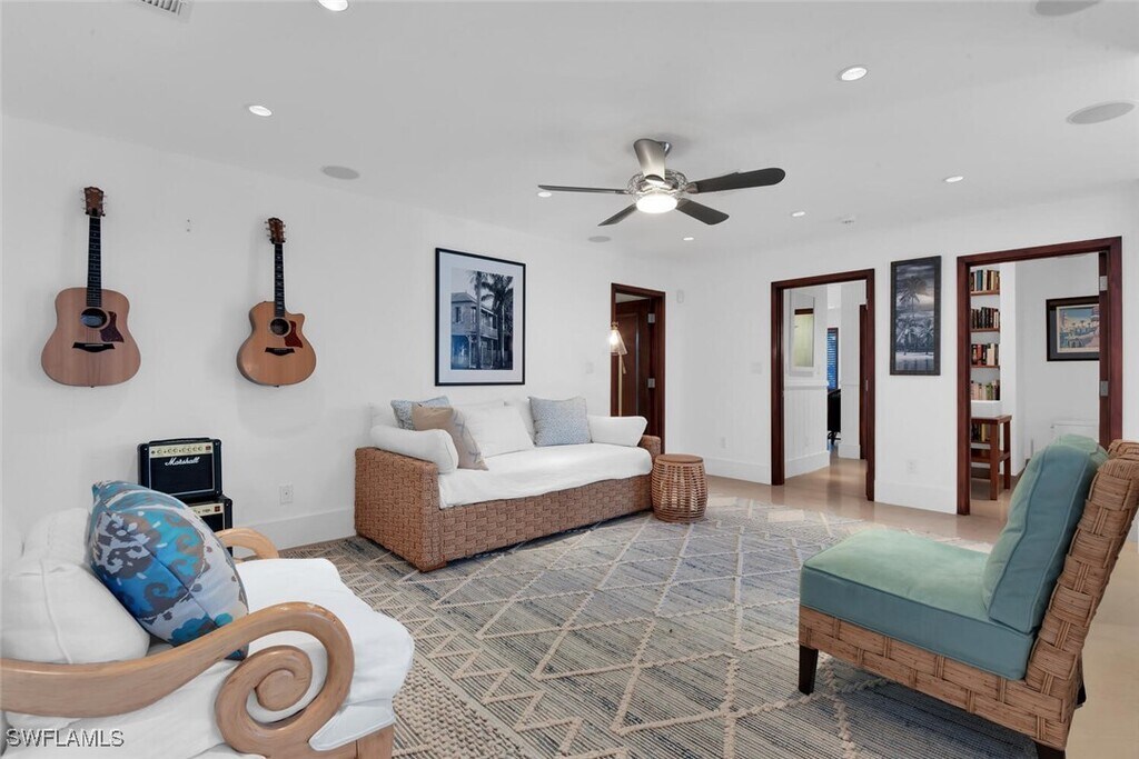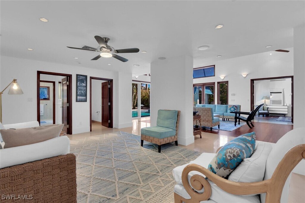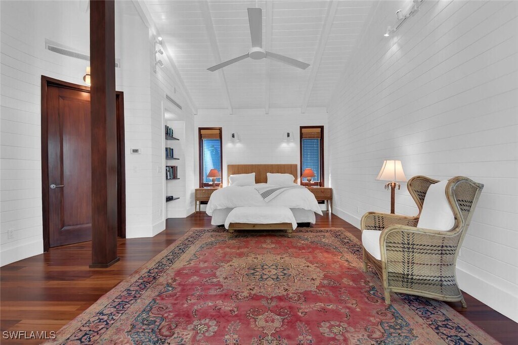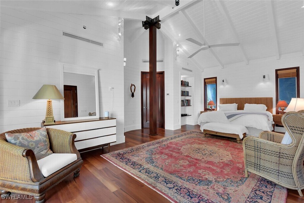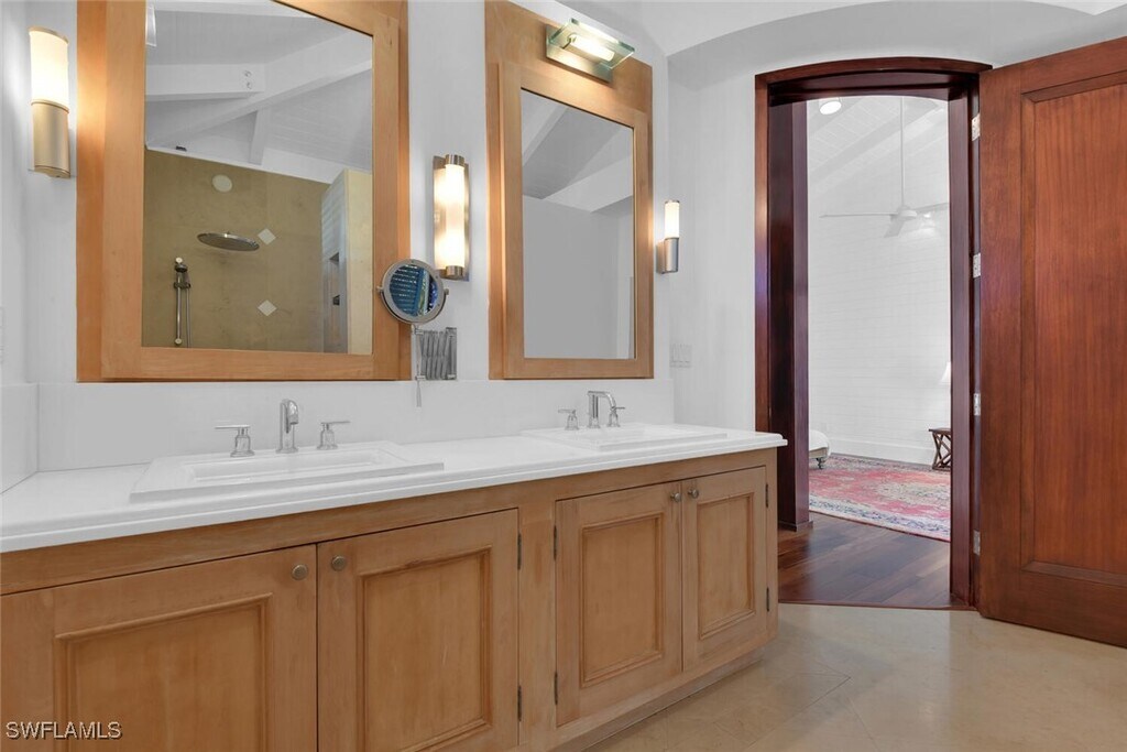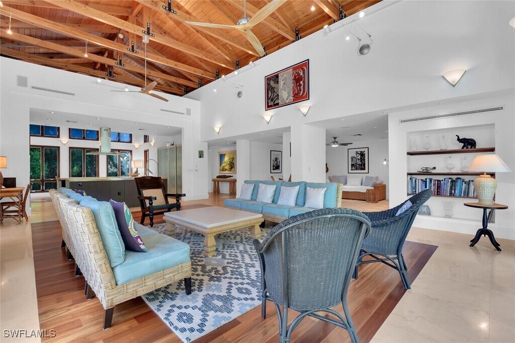 Step into your own slice of paradise in the heart of Naples! This stunning coastal retreat blends luxury,comfort,and location in one unforgettable package. Nestled directly on the water with backyard access to Naples Bay,and just a short stroll to the vibrant Third Street South district,you’ll enjoy the best of both worlds—secluded tropical serenity and walkable access to world-class dining,shopping,and cultural events. Inside,soaring vaulted ceilings with exposed beams,rich cherry wood accents,and walls of windows set the tone for an airy,light-filled getaway. The open-concept layout seamlessly connects the formal dining room,gourmet chef’s kitchen,living room,and family room—ideal for entertaining or cozy family evenings. The kitchen is a dream for food lovers and casual cooks alike. With plenty of space to gather around two large islands,top-tier appliances,and stylish custom finishes,it’s the perfect spot for preparing a fresh seafood dinner,sharing morning coffee,or simply enjoying time together while the sunlight streams in. Step outside and be transported to your own private tropical oasis. Sway in a secluded hammock beneath the palms,rinse off in the outdoor shower after a beach day,or soak up the sun on the spacious deck. The covered outdoor dining space invites leisurely alfresco meals,with lush landscaping and coastal breezes all around. The luxurious master suite is a peaceful sanctuary with private access to the outdoor spaces,exposed beam ceilings,built-in bookshelves,and a spa-inspired bath featuring floating vanities and a walk-in shower. Two additional guest suites (one with private outdoor access) and a cozy den/flex space offer room for everyone to unwind. Whether you're watching the sun set over the bay,strolling to a five-star dinner,or simply relaxing under the Florida palms,this one-of-a-kind home offers an elevated Naples experience you won't soon forget.