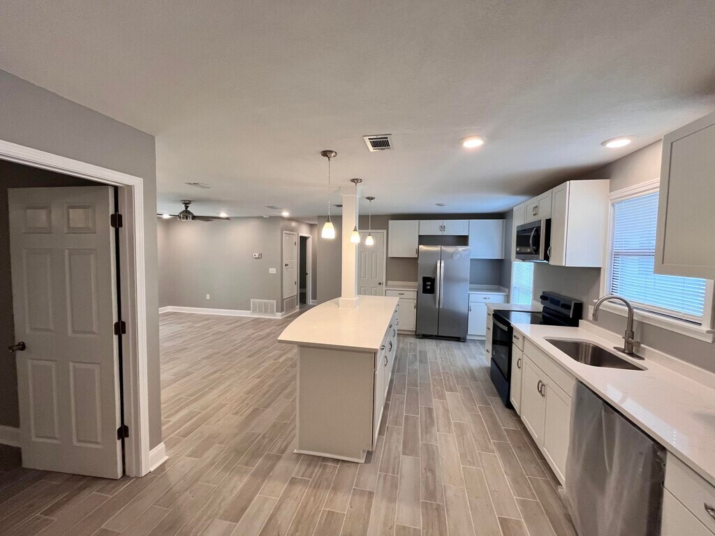 Welcome to your newly remodeled home at 795 Bay Street! This beautiful property has been thoughtfully updated from top to bottom and is move-in ready. Step inside to find bright, open spaces with luxury vinyl plank flooring throughout, sleek quartz countertops, and stainless steel appliances that make the kitchen both stylish and functional. The bathroom features a beautifully tiled shower, creating a spa-like feel for everyday living.Outside, fresh sod enhances the curb appeal, while the large backyard offers plenty of room to relax, play, or entertain. The garage provides extra convenience for parking or storage, making this home as practical as it is inviting.
