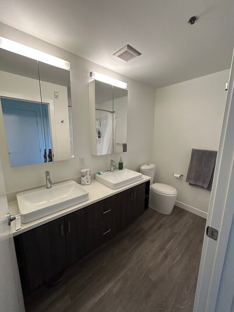 Available ASAP we will pay the first months rent - 2 bed 2 full bath - located on 3rd floor - the emerald suite - open plan layout with great natural light - air conditioning - quiet corner unit with lovely neighbours - air conditioning and heating - internet included - in suite laundry and dish washer - gym access included - well maintained building with responsive management - pet friendly - peaceful, modern and conveniently located We are moving because we bought a house
