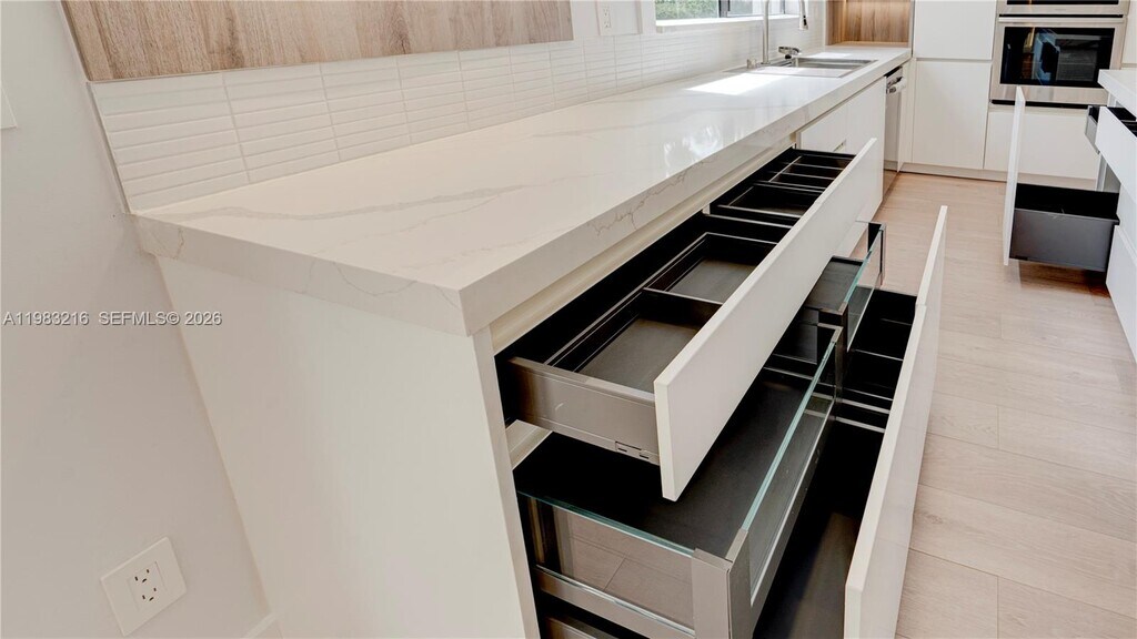 Completely renovated luxury home with high-end finishes, designer details, premium smart-home features throughout. This exceptional residence offers a modern, light-filled design w/everything completely new, combining contemporary elegance with comfort, functionality and resort-style outdoor living. Main Features are: Fully newly renovated with luxury finishes & equipment throughout; Bright, modern interior with light tones & warm wood accents; Waterproof luxury vinyl flooring; Contemporary glass staircase; In-ceiling ambient LED light strips in every room; In-ceiling speaker installation; Kasa smart dimmer switches throughout the home, controllable via Alexa; Separate guest house w/ private bathroom; Beautiful pool area w/ lush tropical landscaping; Tikki Hut tropical patio lounge; Designer kitchen w/ premium finishes & thoughtful custom details: Thick marble countertops; Light-color palette with elegant wood elements; Large kitchen island w/ integrated LED lighting; Induction cooktop with hood; Soft-close cabinetry throughout w/ BLUM hinges; High-end interior cabinet drawer organization for cutlery, spices & more; LED-lit shelving; Wine cooler; Luxury bar sink with premium accessories, including waterfall faucet, cutting board; Spacious pantry w/ ample storage & Motion-sensor shelf lighting, all bathrooms have Floating vanities- Primary has double; LED vanity mirrors; Marble showers w/ floating glass enclosures; Smart toilets w/heated seats & automatic flush. A MUST SEE! MLS # A11983216