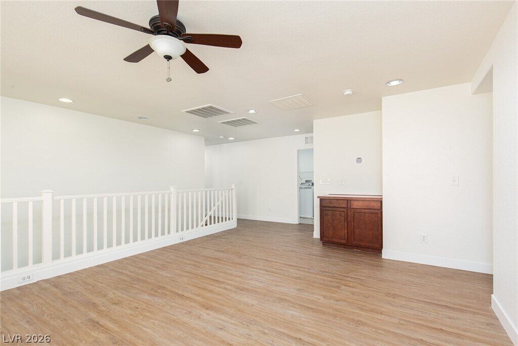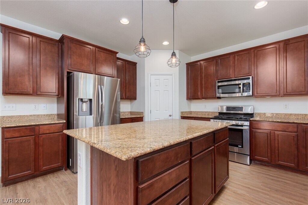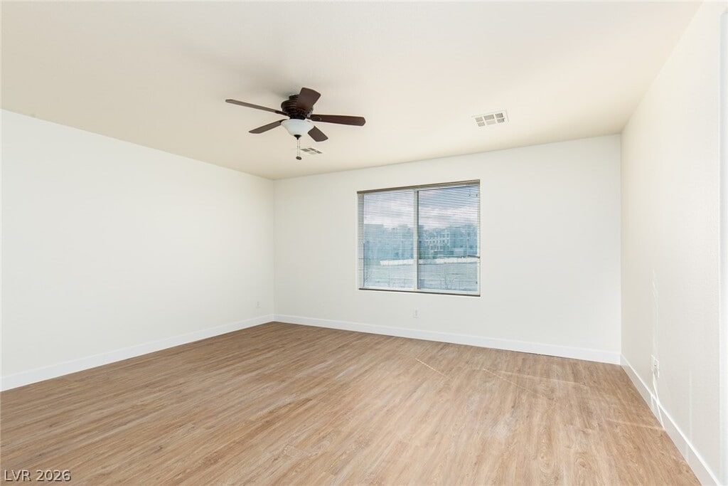 Welcome to this stunning 4-bedroom, 2.5-bathroom home located in the vibrant Southwest area of Las Vegas. This property boasts an array of modern amenities that are sure to impress. The heart of the home, the island kitchen, is equipped with top-of-the-line stainless steel appliances and sleek granite counters, perfect for any culinary enthusiast. The home also features a spacious loft, ideal for a variety of uses. Each room is fitted with ceiling fans for your comfort, and the master bath offers the luxury of a separate tub and shower. Step outside to a large paver patio, perfect for entertaining or simply enjoying the Nevada sunshine. The backyard is a low-maintenance dream with synthetic grass. Adding to the home's appeal is the all-wood flooring throughout, lending a touch of elegance and warmth. This home truly offers a blend of comfort and style in a fantastic location.