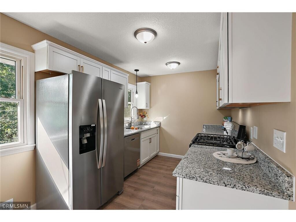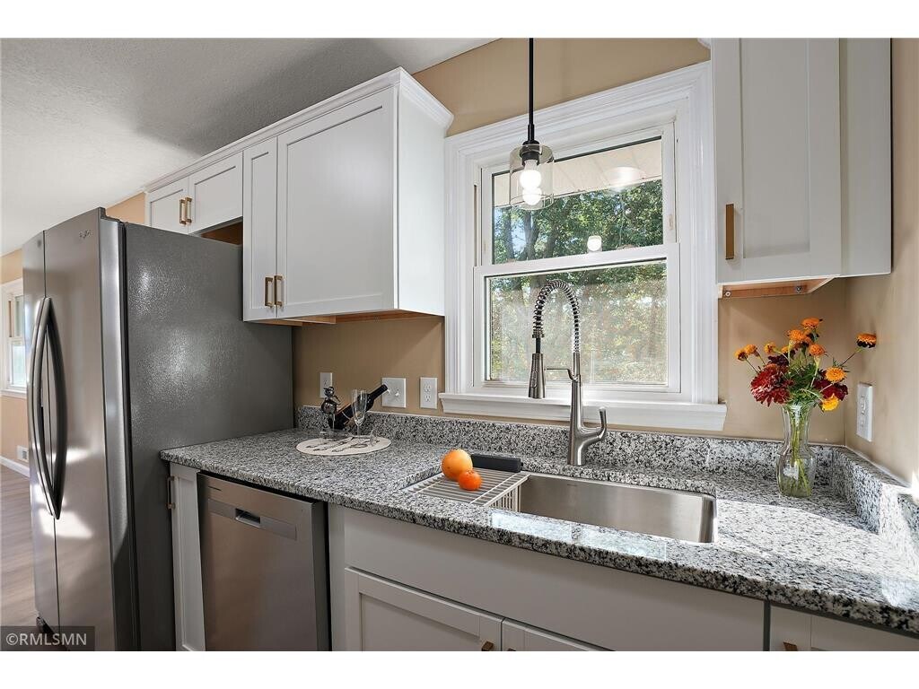 Handsomely renovated 4bedrooms/2 baths walkout rambler on a private lot overlooking New Hope Village Golf course. This home offers ample space, featuring three bedrooms on the main level. In the lower lever there is a 4th bedroom, an office and spacious utility/washer/storage room. The basement is newly finished including new electrical wired, insulation and sheet rocks. Spotless, shiny, like new, with many modern touches. New upgraded plumbing for both bathrooms and kitchen. Kitchen feature: white cabinetry, granite countertops, deluxe sink and faucet, all new stainless steel appliances, vent hood exhausts outside, window and adjoining full sized dining room. New doors, new modern light fixtures throughout the house, new luxury Waterproof VP Flooring throughout the main level, New carpet in the lower level. New Furnace, AC, faucets, light fixtures, trim, knockdown ceilings and much more. Enjoy a relaxing backyard with walkout basement wooden patio. Less than 10 minutes from the heart of Maple Grove, and less than 30 minutes from downtown Minneapolis & the airport. —schedule your showing today!