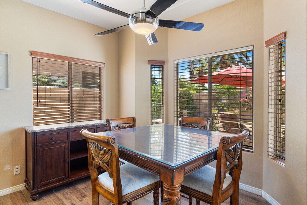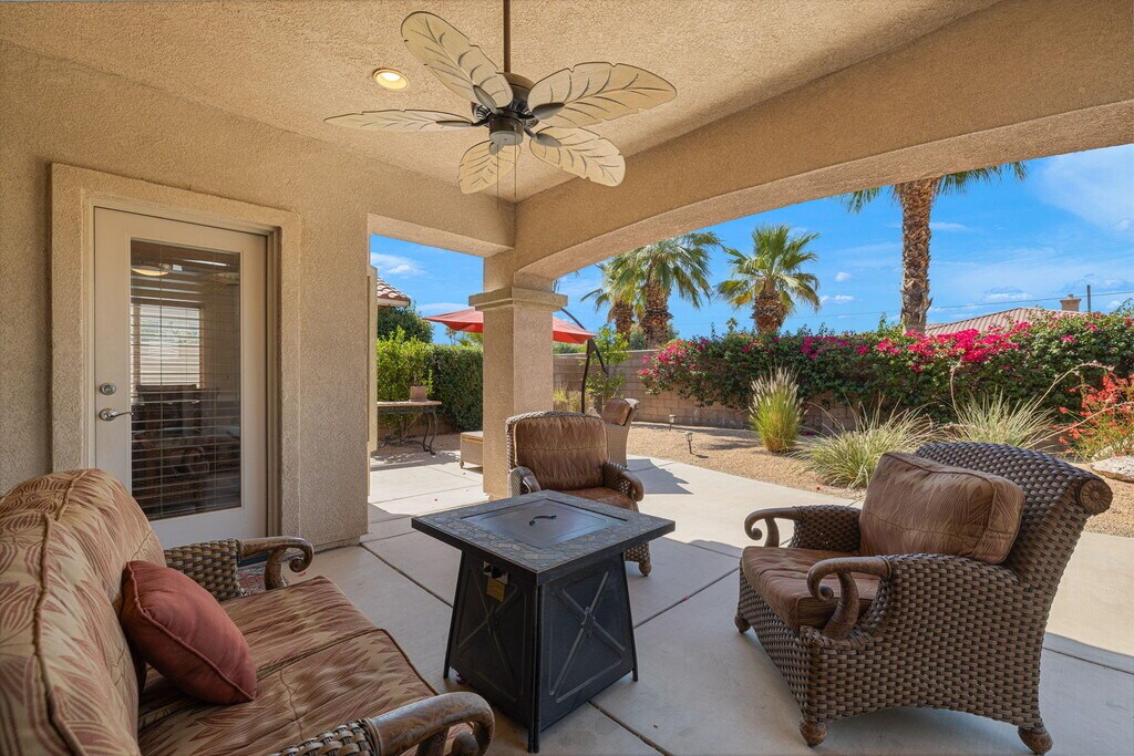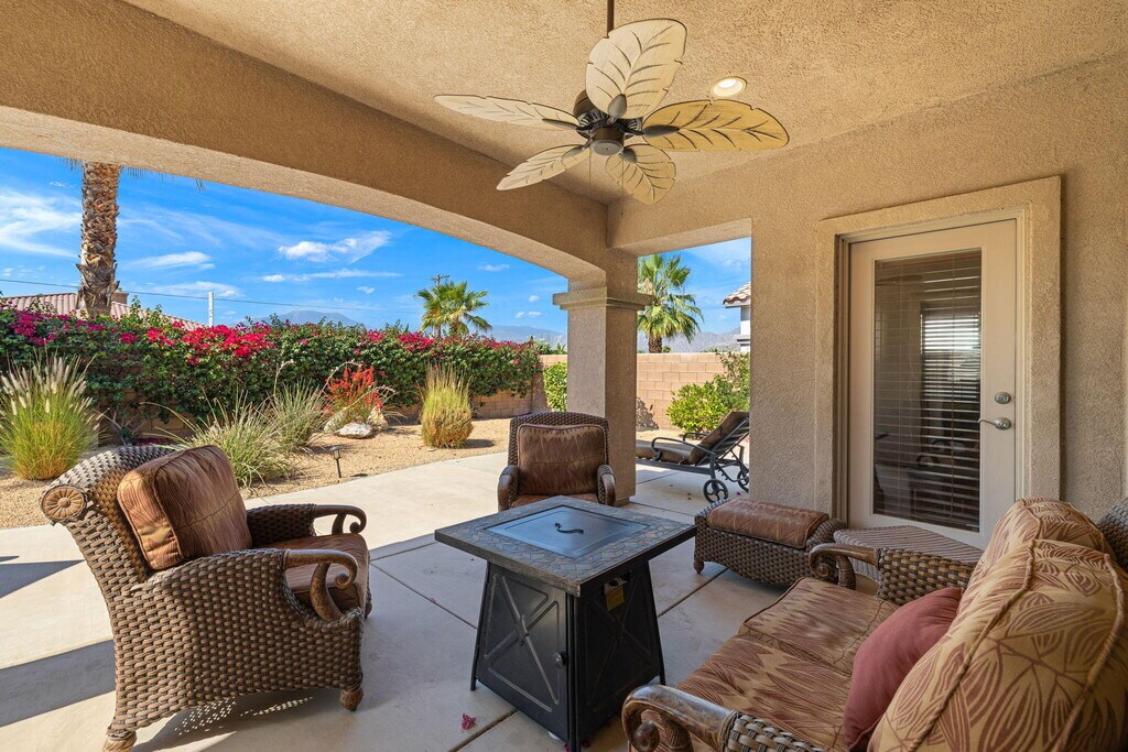Fully turnkey furnished rental available March 1. $4500/mo monthly or annual lease at $3200/mo. The perfect size house inside the gates of the beautiful Indian Springs CC. This 3 bedroom and 2 bathroom Newport model with wood like tile flooring throughout (1 king,2 queens) 2 bathrooms and a great room feel with living,dining,and kitchen all connected. The backyard has southern sun exposure and views of the Santa Rosa mountains. Zoned for all three of the DSUSD schools (LQHS,John Glenn,Amelia Earhart) that are within walking distance for the kiddos. This clean and bright 1500sqft property includes stainless steel kitchen appliances and washer and dryer in the laundry room with utility sink. Some pets may be acceptable with landlord approval. Indian Springs CC is a guard gated community that offers a fitness center with jacuzzi and lap pool. Included with the rent is Frontier High-Speed Internet and DirecTV with HBO & Showtime. MLS # 219142880