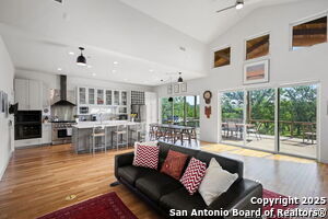 Experience refined Hill Country living in this modern lakefront estate, gracefully situated on 2.3 private acres with sweeping panoramic views of Lake Travis and the surrounding hills. This newly constructed, low maintenance and energy efficient custom residence offers 2,000 square feet of thoughtfully designed living space, featuring two spacious bedrooms and 2.5 full baths. The open concept main level is a study in sophistication, with soaring vaulted ceilings, expansive picture windows that frame the ser