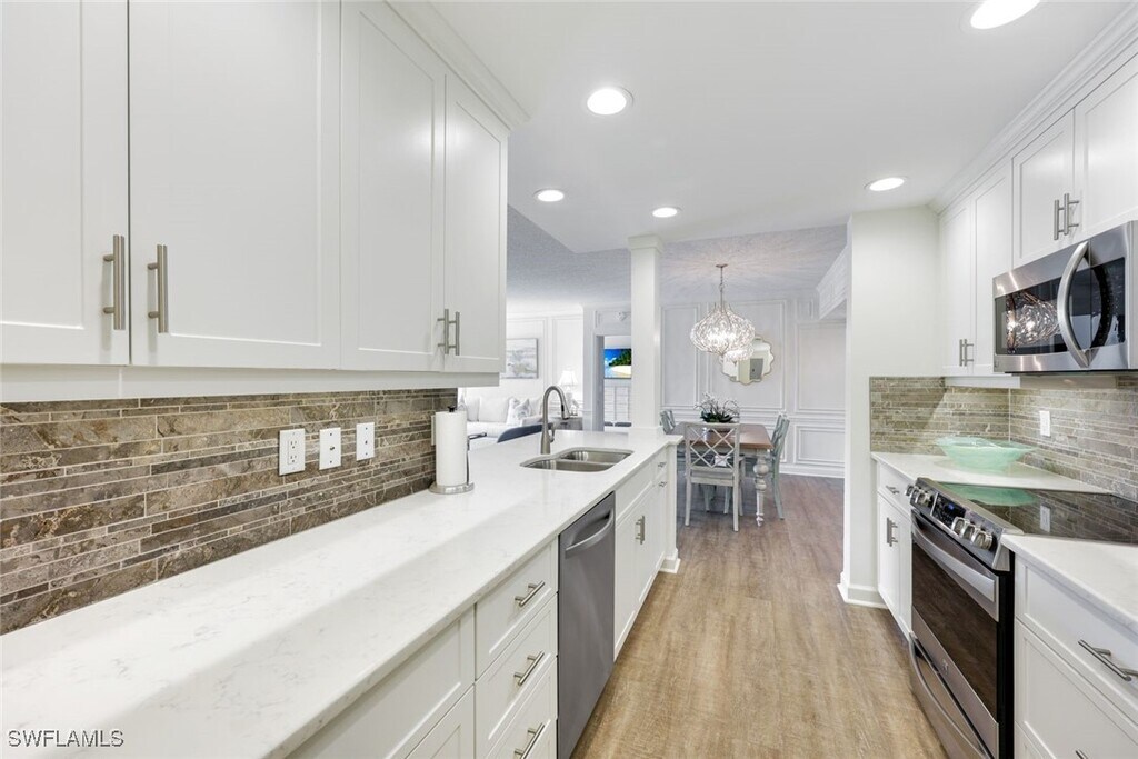 Nice and Bright and Light! This first-floor end unit in Willowbrook at Pelican Bay has 2 bedrooms,a spacious den,2 baths and has been beautifully renovated in a warm and inviting style. Enjoy a peaceful lake view from your comfortable sun-lit lanai which can be used as an extra indoor or outdoor living space. The gorgeous kitchen opens up to the main living and dining areas with plenty of space for entertaining guests. Follow the palm tree lined sidewalk from your front door which leads you directly to the oversized sun-drenched community pool or you can hop on the tram if you're in the mood for the beach. The world class amenities of Pelican Bay are also available to you and include tennis,pickleball,fitness center,beach front restaurants,sunset beach bars,and more. Many fine shopping and dining options are conveniently close by. Welcome Home!