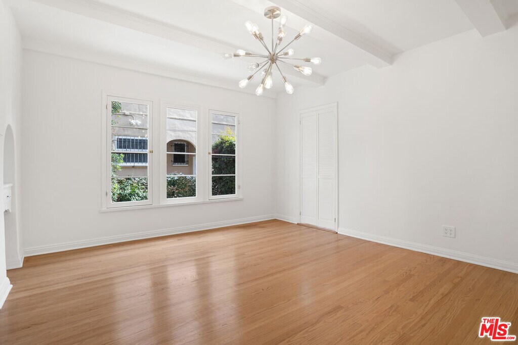 Welcome home to the charming, 3 bed, 2 bath lower unit of this classic Spanish revival duplex in the heart of Beverly Grove. The common areas all on a grand scale with gorgeous hardwood floors throughout. The living room with fireplace features a classic bookcase and front patio. Double doors open to an expansive bonus room along side of the living room. On thefar side there are steps that lead up to the dramatic formal dining room, the bright completely remodeled kitchen with all new appliances, the adjoining sunny breakfast room and roomy separate service porch with washer dryer and storage. The primary bedroom has a new en-suite bathroom with shower. The second hall bath features vintage tiles with a tub and seperate shower. Nice sized bedrooms and an abundance of closets complete this lovely home. Steps from 3rd St . Property is within minutes of Beverly Hills, Century City, The Grove and Hollywood. 25 minutes from DTLA,the beach or LAX. Walk to shopping & restaurants, Trader Joe's, Farmers Market just 5 minute walk away. Exterior recently painted different from photos shown MLS# 25628911