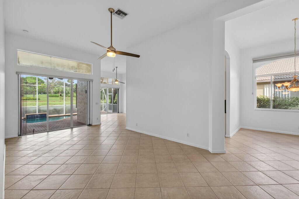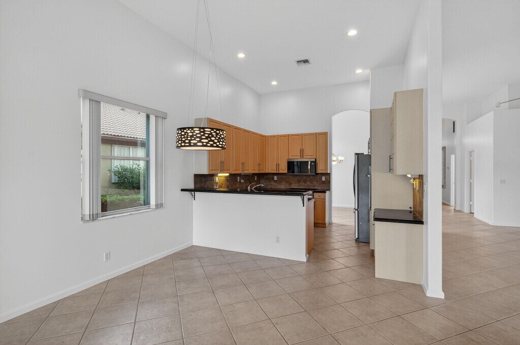 Now available as an unfurnished rental in the prestigious Polo Trace community of Delray Beach! Located at the end of a quiet cul-de-sac, this beautifully maintained single-family home features 4 bedrooms -- including a versatile bonus room -- 2.5 bathrooms, a 2-car garage, a private pool, and a screened-in patio. The bonus room, currently set up as a home office, boasts custom built-in wood cabinetry and a matching desk. The home's curb appeal is enhanced by a neutral stucco exterior and a brick-paver driveway leading to the 2-car garage, complete with a freshly coated epoxy floor. Step inside the entry to find a freshly painted, bright white interior and stunning tile floors that flow throughout the main living areas, offering a clean, airy feel complemented by vaulted ceilings and large
