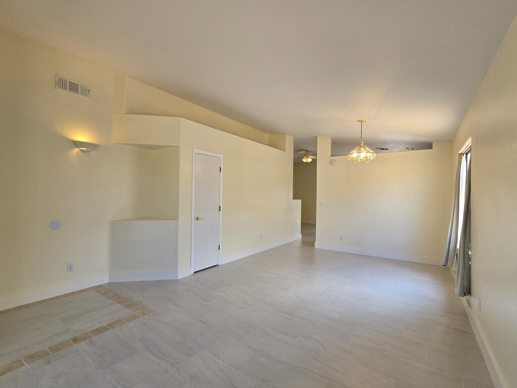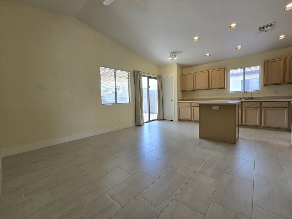 Inviting 3BR, 2BA home in desirable Continental Ranch. You are welcomed by a bright, open floor plan filled with natural light and warming charm, featuring vaulted ceilings and new tile floors. No carpet! A functional kitchen features plenty of cabinet and counter space, a pantry for added storage, and a center island that opens to the family room with wood-burning fireplace. Newer energy-efficient appliances, including a refrigerator, washer, and dryer. The spacious owner's suite features a large walk-in closet and a double-sink vanity. Formal living/dining room with vaulted ceilings. The low-maintenance backyard offers a lime tree and added privacy with no rear neighbors, perfect for relaxing or entertaining. Located near shopping, dining, and entertainment, as well as community parks, and on those hot summer days, take advantage of community pool access.
