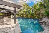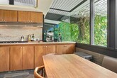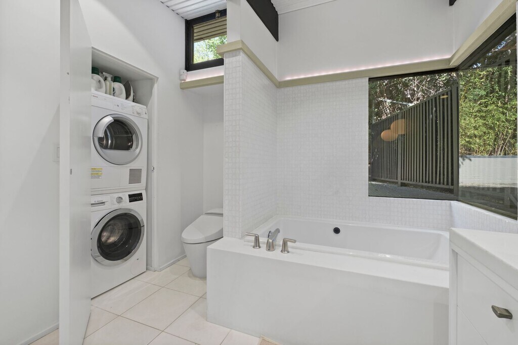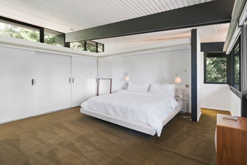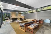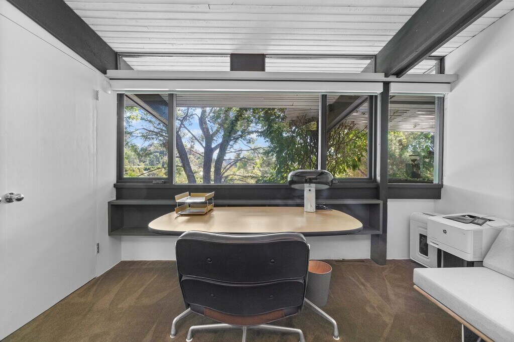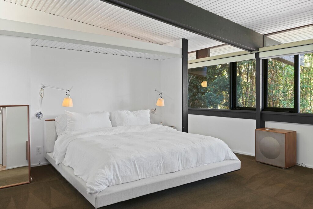 Rare opportunity to lease the iconic Sjoberg Residence, built in 1954 in the Hollywood Hills. Designed by Dutch architect John Sjoberg and captured by Julius Shulman for Modernism Rediscovered, this mid-century modern home features Brutalist accents and mature native landscaping for privacy. The post-and-beam construction offers an open floor plan with glass walls, creating seamless indoor/outdoor living. Highlights include a cement fireplace, upgraded kitchen with soapstone counters, Carrara marble, and custom stone and recycled glass tile work throughout. The main house features a primary suite with spa-like bath, a guest bedroom, and a modernized bathroom. A separate studio residence with a 3/4 bath, private entrance, koi pond, and waterfall offers flexible use for work or leisure. Outdoor spaces include a lagoon-style pool, meditation pavilion, and multiple dining areas with views of Laurel Canyon. This gated retreat is minutes from Hollywood and major studios, with two covered parking spaces. Don't miss this piece of Los Angeles history. The main house features 2 bedrooms and 2 bathrooms, approximately 1,600 sq. ft. The 3rd bedroom and bathroom are separate from the main house. Includes a 2-car side-by-side carport with additional parking in the driveway. Landlord covers pool, gardener, and koi pond maintenance; tenant is responsible for all utilities. Small dogs will be considered.