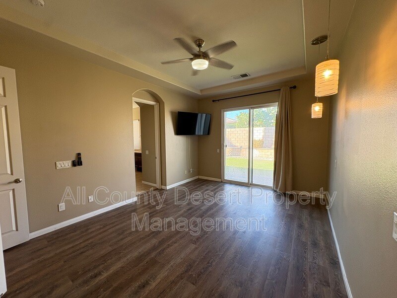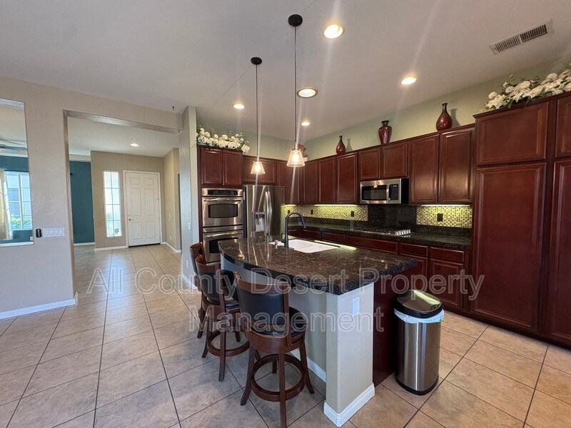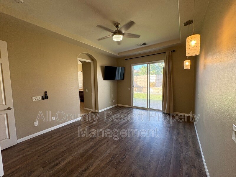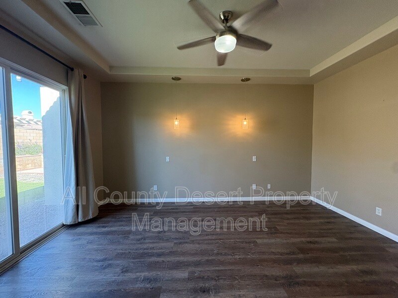 Spacious 4BR/3BA home available for long term lease located in the highly desirable gated neighborhood of Esplanade in La Quinta. This home features a large kitchen/living area with granite counters, breakfast bar, stainless steel appliances and patio door leading out to private patio and large, walled yard. Master Suite features double vanities, soaking tub and walk in closet. Detached furnished casita unit with large closet, full bath, small refrigerator, microwave and hot plate. Interior laundry room with lots of storage and washer and dryer. Double car attached garage. Tenant to pay all utilities. All applicants must pass a comprehensive background screening including income verification and landlord references. Renter's insurance is required. All applicants must have the following: monthly income of 2.5 times the monthly rent, a good rental history and an acceptable credit score. If you see this home advertised online for less than the rental amount quoted here, the ad is a SCAM. We are the only authorized agent for this property. Please email us a link to any bogus or fraudulent ads so we can report it to the appropriate authorities. Please do NOT send money to anyone who offers keys in exchange for a deposit check - especially if they are out of state. When in doubt, please feel free to contact us.