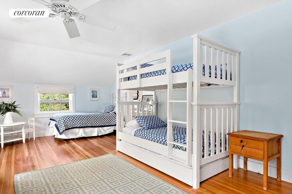 Hidden away down a leafy driveway, this lovely shingle-style 4 BR, 4.5 BA is just a short distance to everything in Quogue. The first floor features an enormous wood-beamed great room with fireplace; eat-in kitchen; laundry room; den; and 1.5 baths. Upstairs is a primary suite with walk-in closet and renovated bath; two twin bedrooms; one queen bedroom, and 2 full guest baths. Outside is a detached garage, spacious back yard, and heated pool.