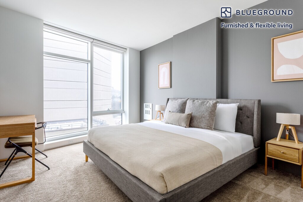 Show up and start living from day one in San Francisco with this stylish two bedroom Blueground apartment. You’ll love coming home to this thoughtfully furnished, beautifully designed, and fully equipped SoMa home with stunning balcony views over the sea. (ID #SFO354) The advertised rate of $7,595/month is the lowest available price, based on a 11 month(s) and 29 day(s) stay with a move-in date of June 1, 2026. Rates vary depending on the duration of stay, season, and other parameters. For exact pricing and additional pricing components, please visit our website and enter your desired move-in and move-out dates. The rate is applicable when billed upfront; it can be higher if billed in multiple payments. Brokers are welcome to reach out. Were you looking for an unfurnished lease? Try Blueground instead and upgrade from unfurnished to furnished living: - Furnished at rates comparable to unfurnished - No setup or furniture costs - save thousands - Move-in ready - save time, just bring your suitcase Designed with you in mind Thoughtfully designed with bespoke finishes, modern furnishings, and a fully equipped kitchen, you’ll enjoy that “I’m home” feeling with this Blueground apartment. Whether you’re lounging in your comfortable living room streaming the latest and greatest entertainment on the smart TV or premium wireless speaker, or getting some well-earned rest on the superior quality mattress with fully stocked linens, you’ll fall in love with everything this SoMa apartment has to offer. This apartment also offers in-apartment laundry. Sleeping arrangements King Bed, 70.8in/180cm Queen Bed, 63in/160cm Amenities Building amenities unique to this two bedroom apartment include an on-site: - BBQ Area - Doorman - Dryer - Elevator - Swimming pool - Washing machine - Lounge - Parking - Pets allowed - Playground Arrival and ongoing support The entire apartment is yours to enjoy! Throughout your stay, you’ll have access to our Client Experience team through the Blueground App. You can schedule additional cleanings, submit maintenance requests, and view our neighborhood recommendations with just a few taps. We’ll share all details upon confirmation of your stay. Ideally Located This furnished apartment is located in South of Market, known as SoMa. A trendy, urban district, famous for its excellent art and museum scene. Home to a diverse mix of entrepreneurs and young families, this neighborhood offers hip bars, fine dinings and delicious coffee. Don’t miss the plethora of museums, including a visit to the San Francisco Modern Museum of Art. Baseball lovers frequently visit SoMa, as it is also home to the San Francisco Giants. Other things to note Building amenities may have an extra cost. This Blueground apartment has flexible lease options, allowing you to book it for one month, a year, or more. Pets are welcome, though weight limits and breed restrictions apply and may incur fees. We take great pride in ensuring every photo displayed is shot in our own units with our actual furnishings. That said, we regularly refresh our decor and furniture arrangement, which may differ from what’s pictured. Also note - There have been reported instances of homeless populations nearby [SI]
