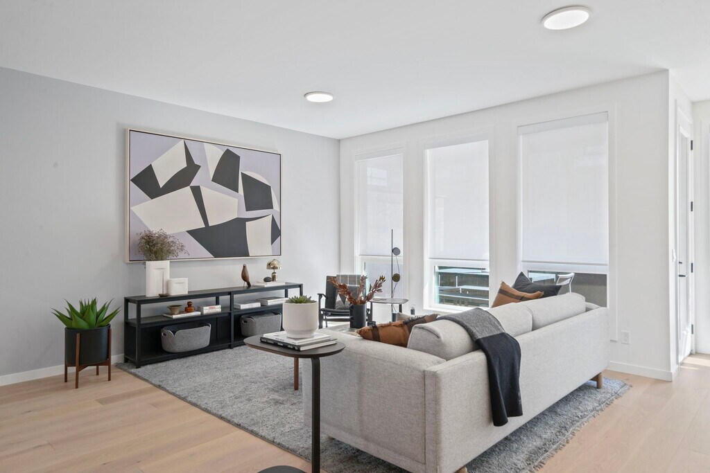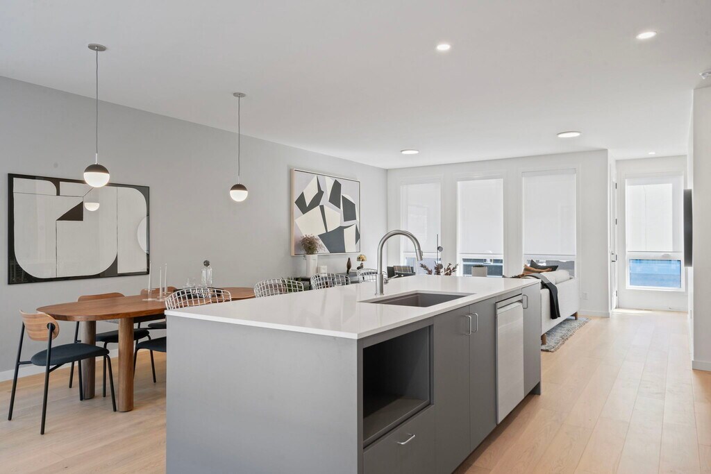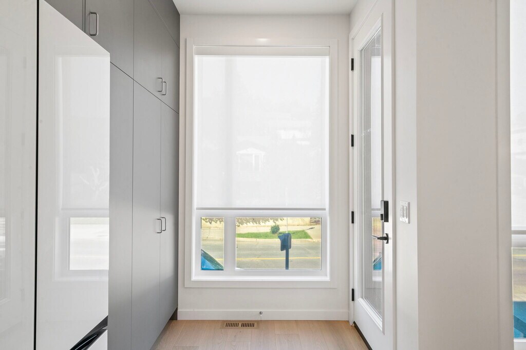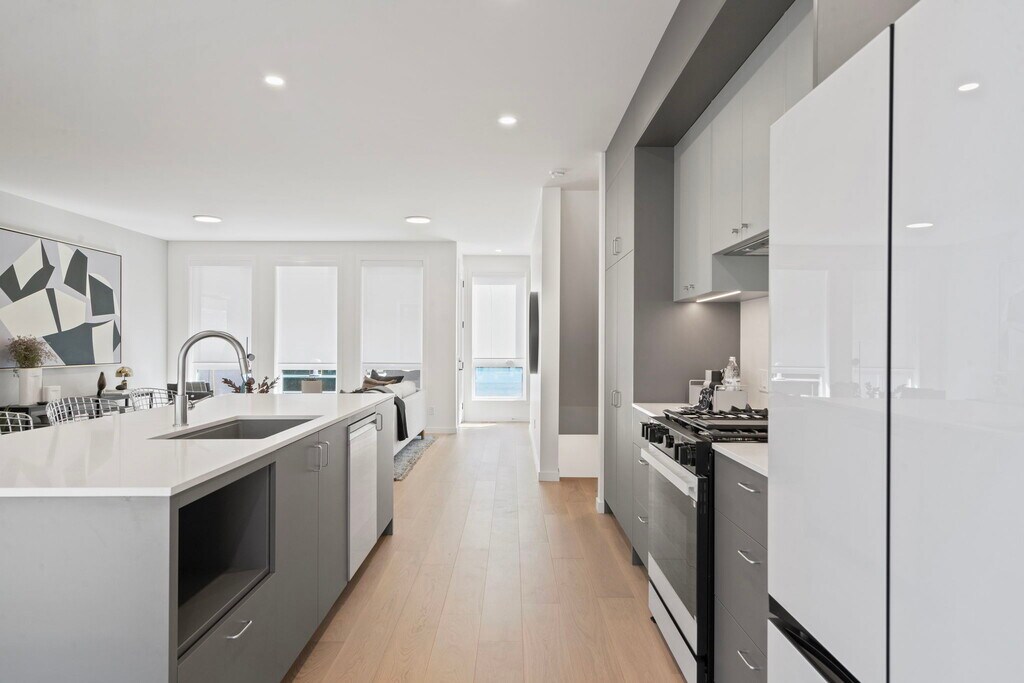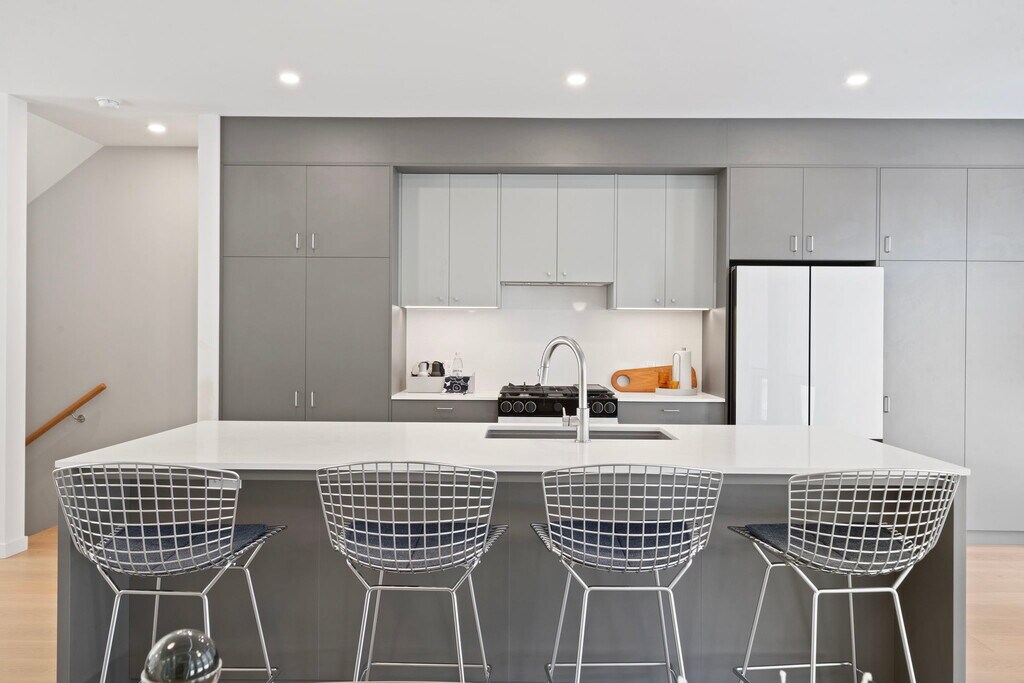 RAMSAY - URBAN CHIC TOWNHOUSE- MOVE IN READY, LUXURY IN THE HEART OF IT ALL Designer colors, finishing, lighting and accents throughout the home Chef's delight kitchen, featuring quartz countertops, floor to ceiling custom millwork with soft-close hinges, a gas cooktop and a bespoke appliance package with back painted glass panels. Convenient main level access to a partially covered, spacious, pressure treated wood deck, perfect for an outdoor dining set, fully equipped with electrical outlets and a gas outlet for convenient outdoor BBQ grilling. Luxurious wool carpet lines the stairs to the upper bedroom level, where you will find 2 generously sized bedrooms and a functional den/flex room, all with tall windows to flood the home with natural daylight. The primary suite includes a stylishly tiled ensuite bathroom with spa inspired shower with glass door, spacious double vanities and quartz countertop, along with a generously sized walk-in closet with matching custom millwork storage 4-piece bathroom with ceramic wall and floor tile. Laundry room on second level. Ground level includes mudroom with coat closet, half bath and third bedroom or can you use as a family room or gym. Ground level walkout level to a fully landscaped central courtyard, with a hardscaped, exclusive use patio area (130 sq.ft.), perfect for an outdoor seating area to enjoy warm summer evenings. Walk directly across the landscaped courtyard to your insulated and heated detached generously sized single car garage with hanging bike storage. RAMSAY - URBAN CHIC TOWNHOUSE- MOVE IN READY, LUXURY IN THE HEART OF IT ALL Designer colors, finishing, lighting and accents throughout the home Chef's delight kitchen, featuring quartz countertops, floor to ceiling custom millwork with soft-close hinges, a gas cooktop and a bespoke appliance package with back painted glass panels. Convenient main level access to a partially covered, spacious, pressure treated wood deck, perfect for an outdoor dining set, fully equipped with electrical outlets and a gas outlet for convenient outdoor BBQ grilling. Luxurious wool carpet lines the stairs to the upper bedroom level, where you will find 2 generously sized bedrooms and a functional den/flex room, all with tall windows to flood the home with natural daylight. The primary suite includes a stylishly tiled ensuite bathroom with spa inspired shower with glass door, spacious double vanities and quartz countertop, along with a generously sized walk-in closet with matching custom millwork storage 4-piece bathroom with ceramic wall and floor tile. Laundry room on second level. Ground level includes mudroom with coat closet, half bath and third bedroom or can you use as a family room or gym. Ground level walkout level to a fully landscaped central courtyard, with a hardscaped, exclusive use patio area (130 sq.ft.), perfect for an outdoor seating area to enjoy warm summer evenings. Walk directly across the landscaped courtyard to your insulated and heated detached generously sized single car garage with hanging bike storage.