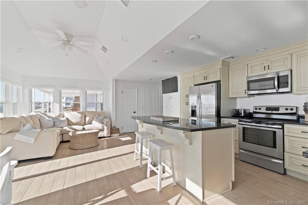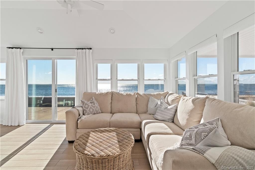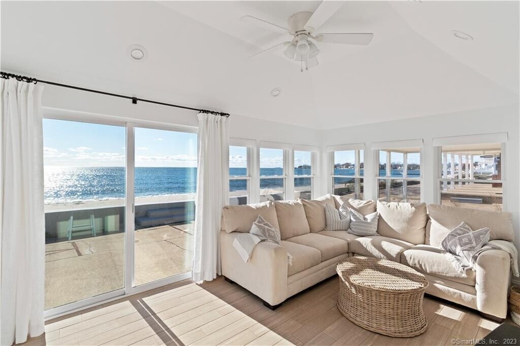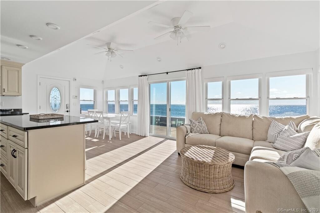 Call for Availability - {Summer 2026 -- June: available -- July/Aug/Sept: rented} This beautiful property is a direct waterfront, 4 bedroom, one-level home situated on a sandy beach in a private association. Wake up every morning to ocean waves, and enjoy the panoramic sunrises/sunsets which are magical here. Upon pulling into the driveway, you'll be greeted by breathtaking water views. The expansive patio right on the beach is perfect for entertaining or relaxing, and is just a few steps to the water. Enjoy spending days lounging on the beach, taking long walks, running, seashell collecting, swimming, entertaining, and making priceless memories. Inside, this beach home offers: stunning ocean views, high ceilings with fans, a wall of windows with sliding door, central air, recessed lighting, New England style light and bright design, open concept one-level living, ample closet space, laundry, 4 bedrooms (king bed in master), and 2 full baths. The kitchen is complete with granite, stainless steel appliances, and a large island with breakfast bar. Recent home upgrades include new furniture, new mattresses, and custom window treatments. Outside, there is a full bath, driveway parking for 4 cars, and grassy front yard. Saybrook marina, Fenwick golf course, The Kate theater, restaurants, and shopping are all close by. Only 2 hours from NYC and Boston. MLS# 24124882